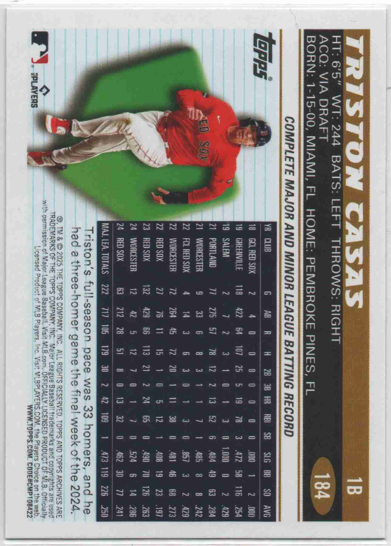 Triston Casas 2025 Topps Archives Black Foil Parallel SP
