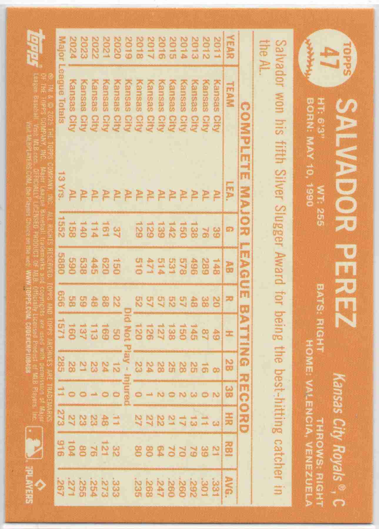 Salvador Perez 2025 Topps Archives Black Foil Parallel SP