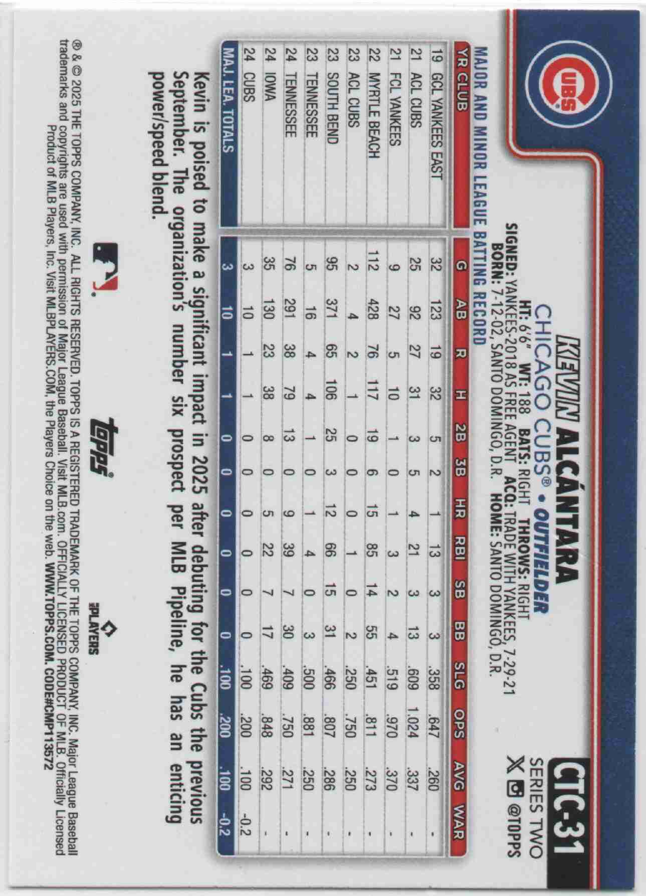 Kevin Alcantara 2025 Topps Series 2 Costco Variation Rookie