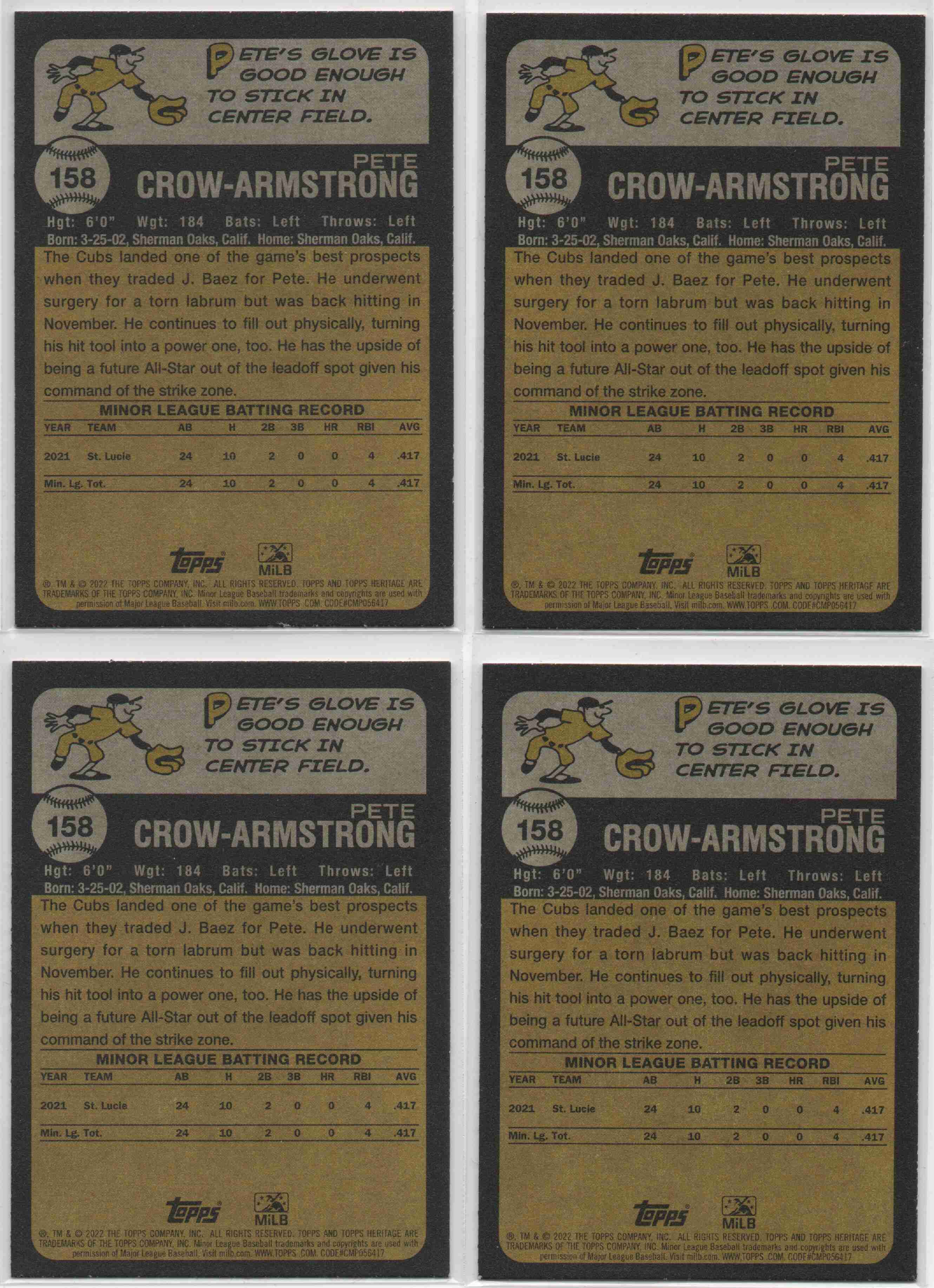 Pete Crow-Armstrong 2022 Topps Heritage Minors 4 Card Lot
