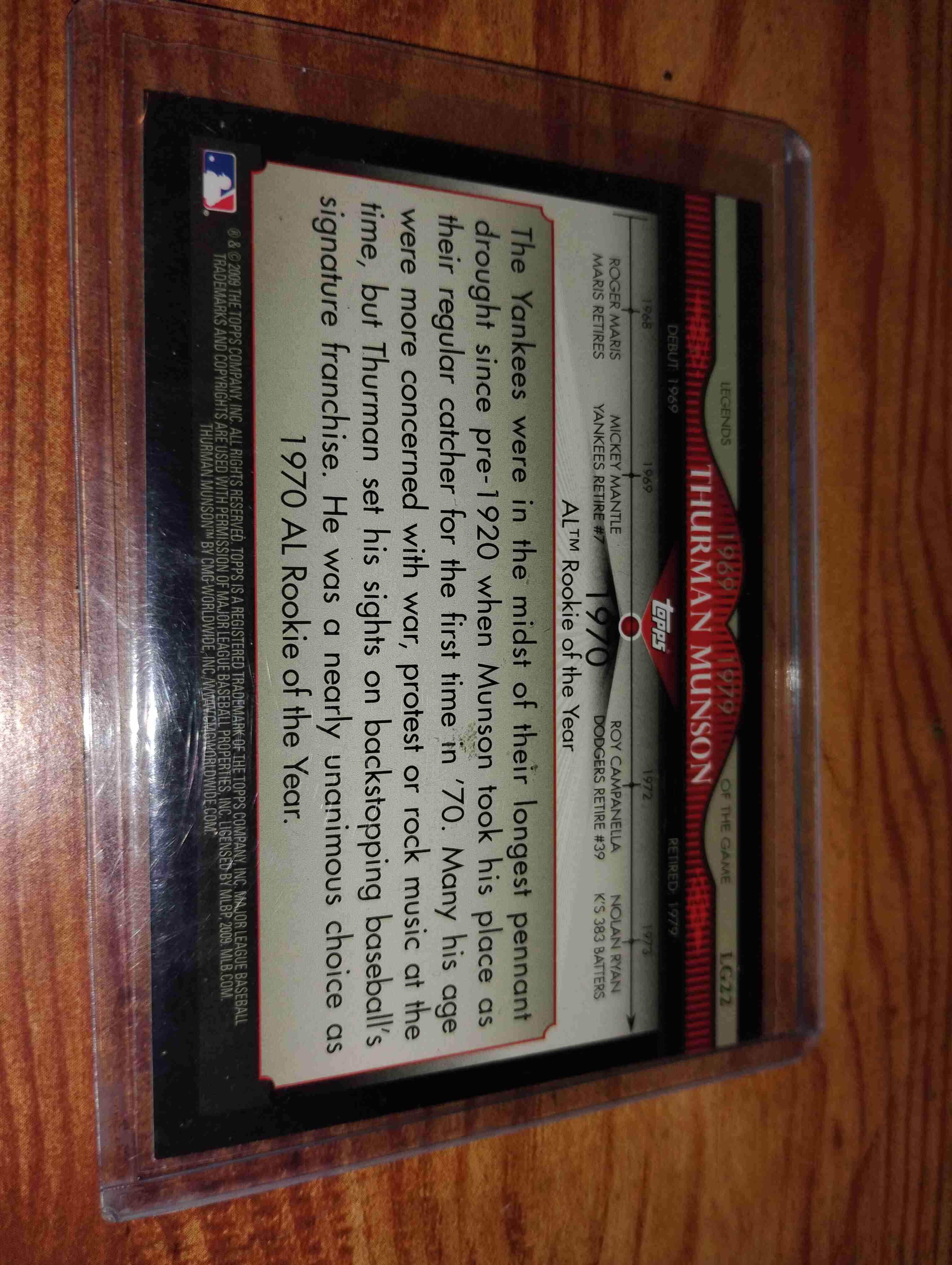 THURMAN MUNSON 2009TOPPS LEGENDS OF THE GAME CARD LG22