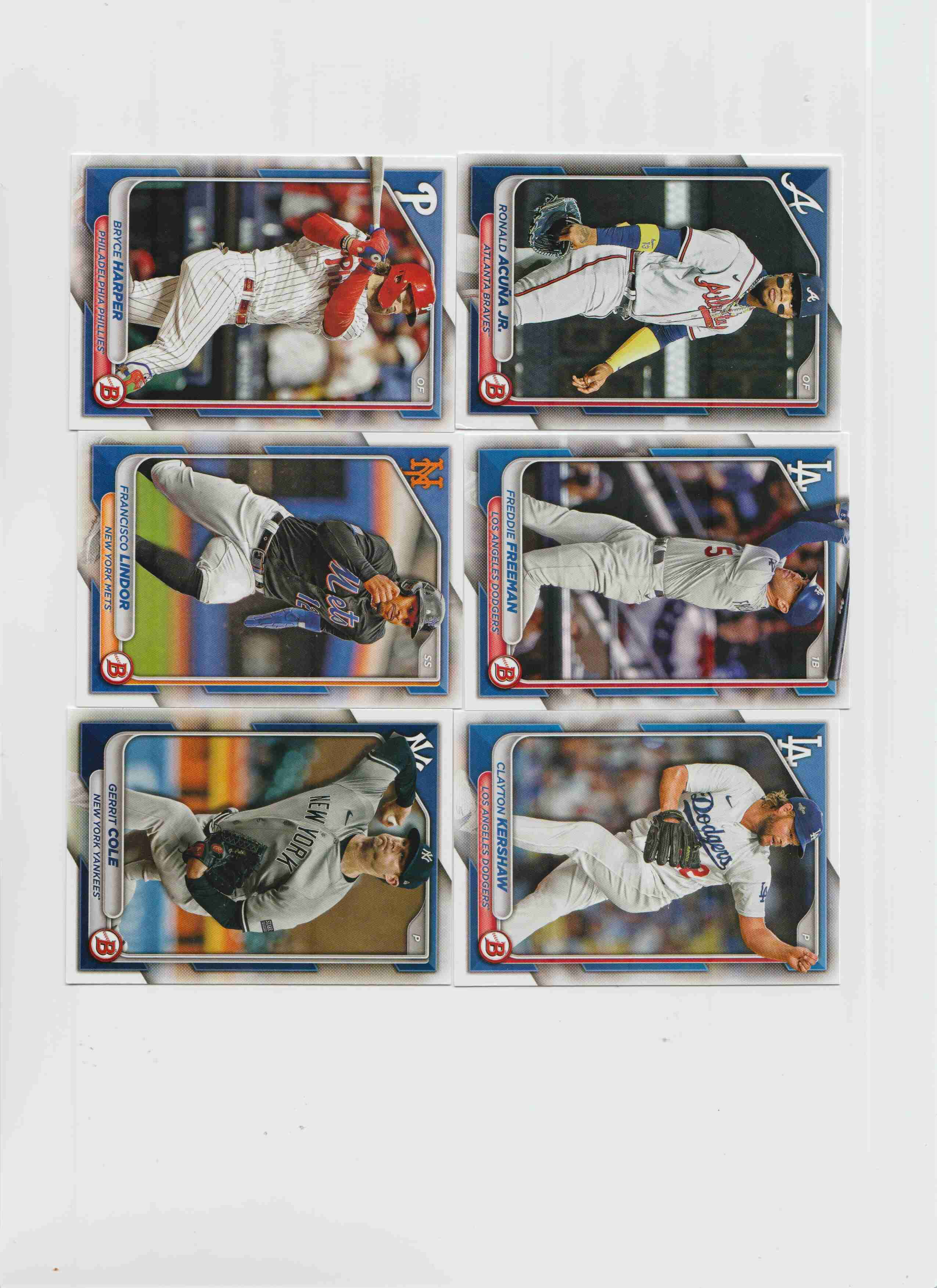 YOU ARE BIDDING ON A COMPLETE SET OF 2024 CARDS ALL CARDS ARE NEW AND IN EXCELLENT SHAPE SEE SCAN FOR SOME OF THE STARS, ALSO THERE IS 2 COMPLETE SETS OF 1986 LEAGUE LEADERS EACH SET HAS 66 CARDS.