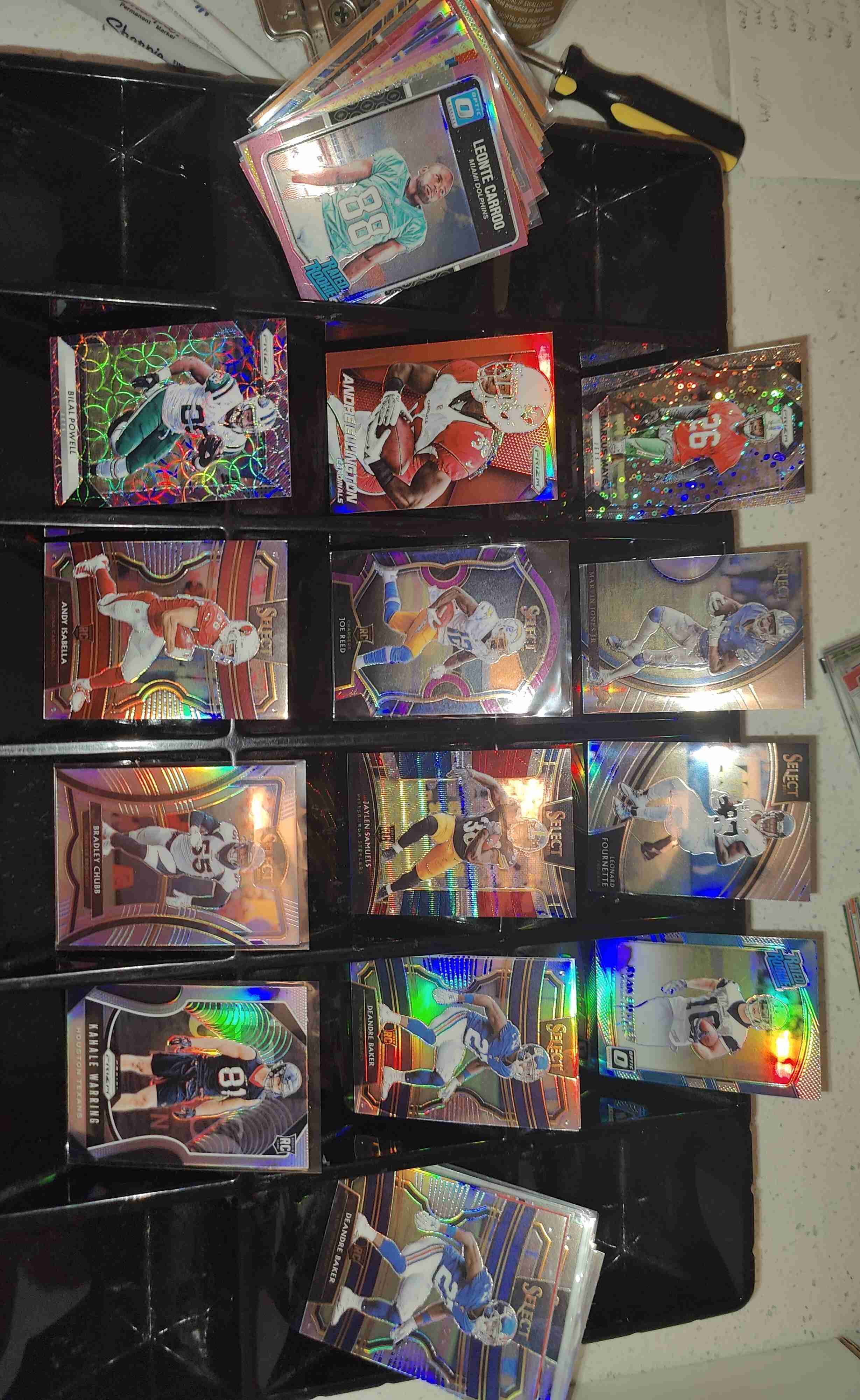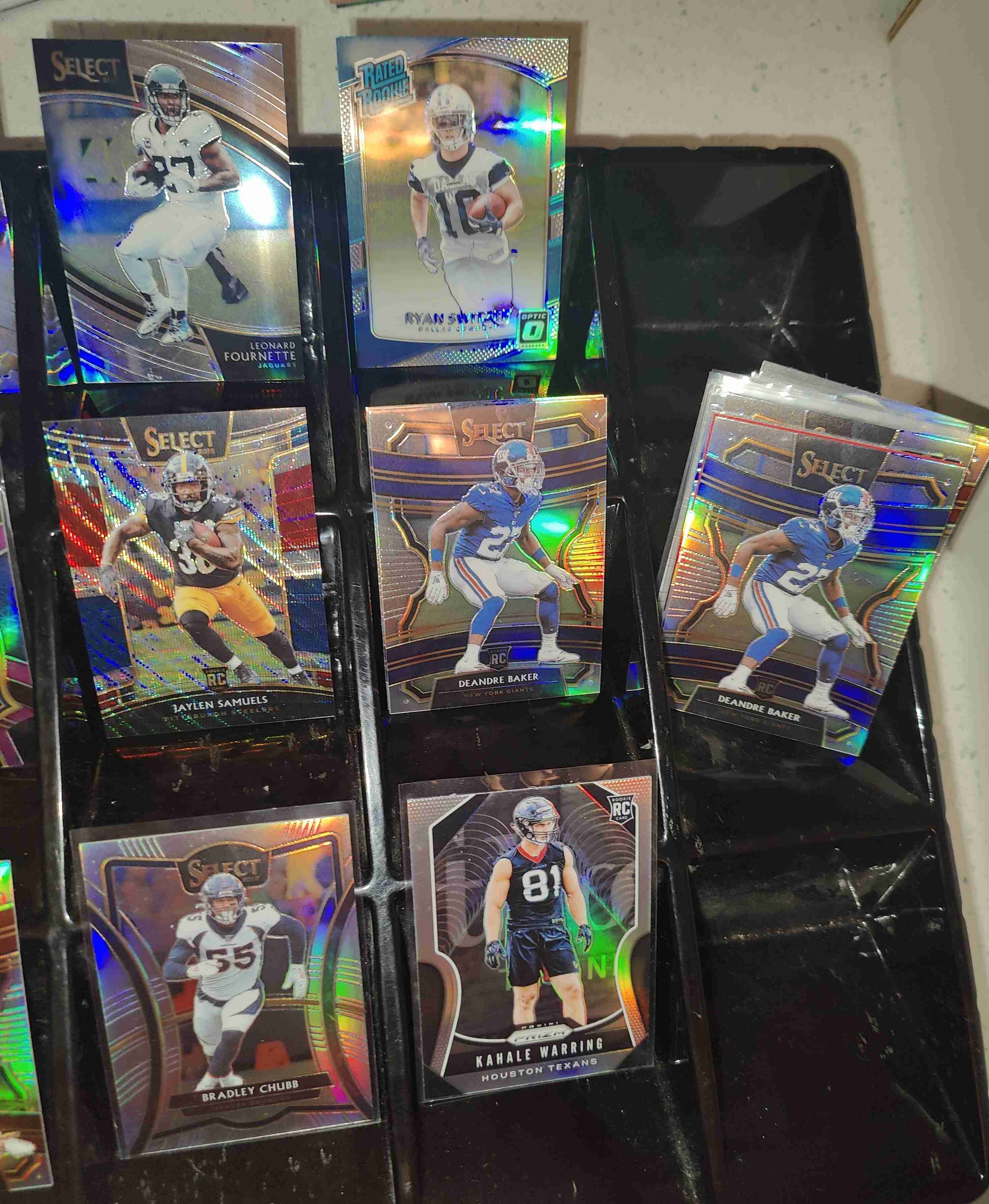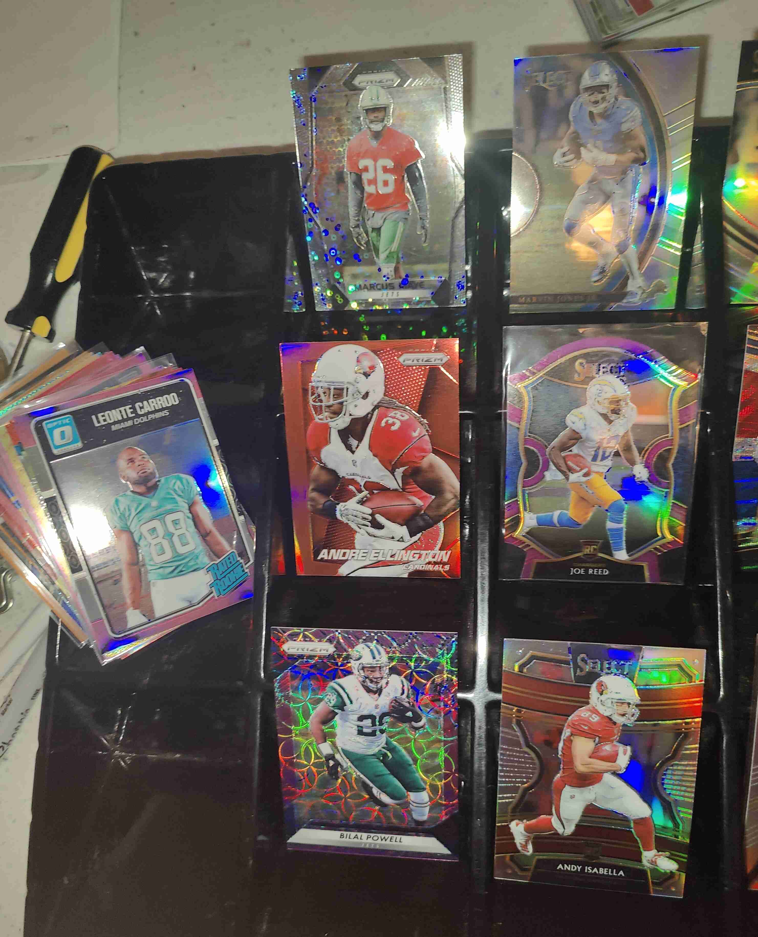 Please read entire description for full info on this lot! This auction is for a 56-card lot of all parallels from Panini products - ALL are Prizms, silvers, holos, color Prizms, etc. All NFL brands, no Draft brands. (NOTE: SEE MY OTHER AUCTIONS FOR TOPPS CHROME REFRACTOR LOTS!) No huge names, some semistars, mostly role-players, some guys who are out of the league. Some rookie cards. Most teams represented. There are a handful of duplicates. BREAKDOWN: 10 serial numbered; 16 color non-numbered; and 30 silver/Disco non-numbered. Condition generally Nrmt-Mt. Cards will be securely packed for shipping. Shipping will be within 5 business days of auction close. Any questions PLEASE contact me. Thanks for looking! - mmozingo a.k.a. "longhornjunkie"