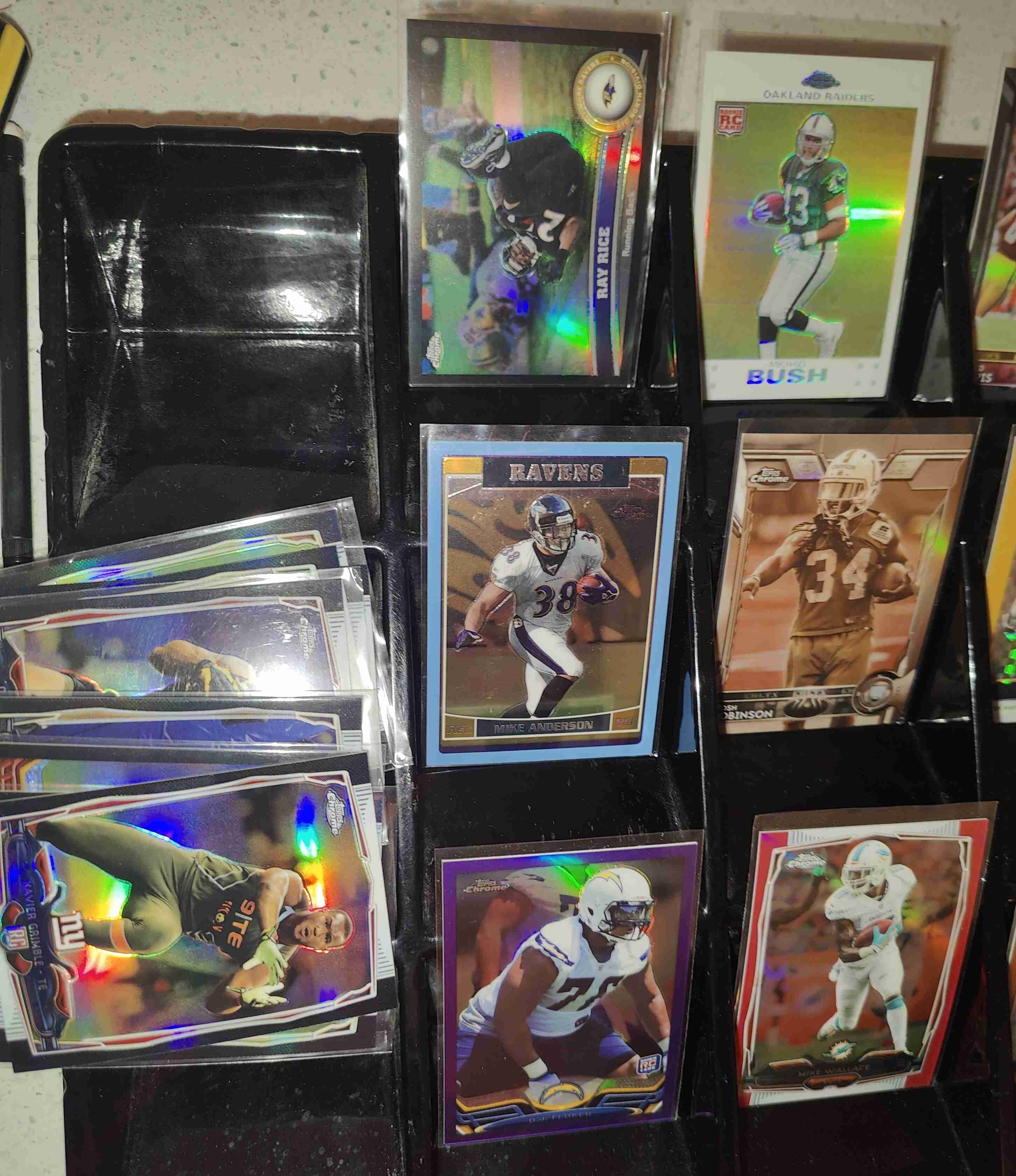 Please read entire description for full info on this lot! This auction is for a 40-card lot of Topps Chrome refractors. These are ALL SERIAL NUMBERED (NOTE: CHECK MY OTHER AUCTIONS FOR SERIAL NUMBERED REFRACTORS!). A few semi-stars such as Mike Wallace, etc. but these are mostly role-players or guys who are out of the league. Some rookie cards. Most teams represented. BREAKDOWN: 1 blue /50; 1 sepia /99; 1 Gold XF /399, 2 blue /199, 3 Prism /216, 1 purple /499, 12 camo /499, 4 pink /399, 14 black /299, and 1 copper /649. Condition generally Nrmt-Mt. Cards will be securely packed for shipping. Shipping will be within 5 business days of auction close. Any questions PLEASE contact me. Thanks for looking! - mmozingo a.k.a. "longhornjunkie"