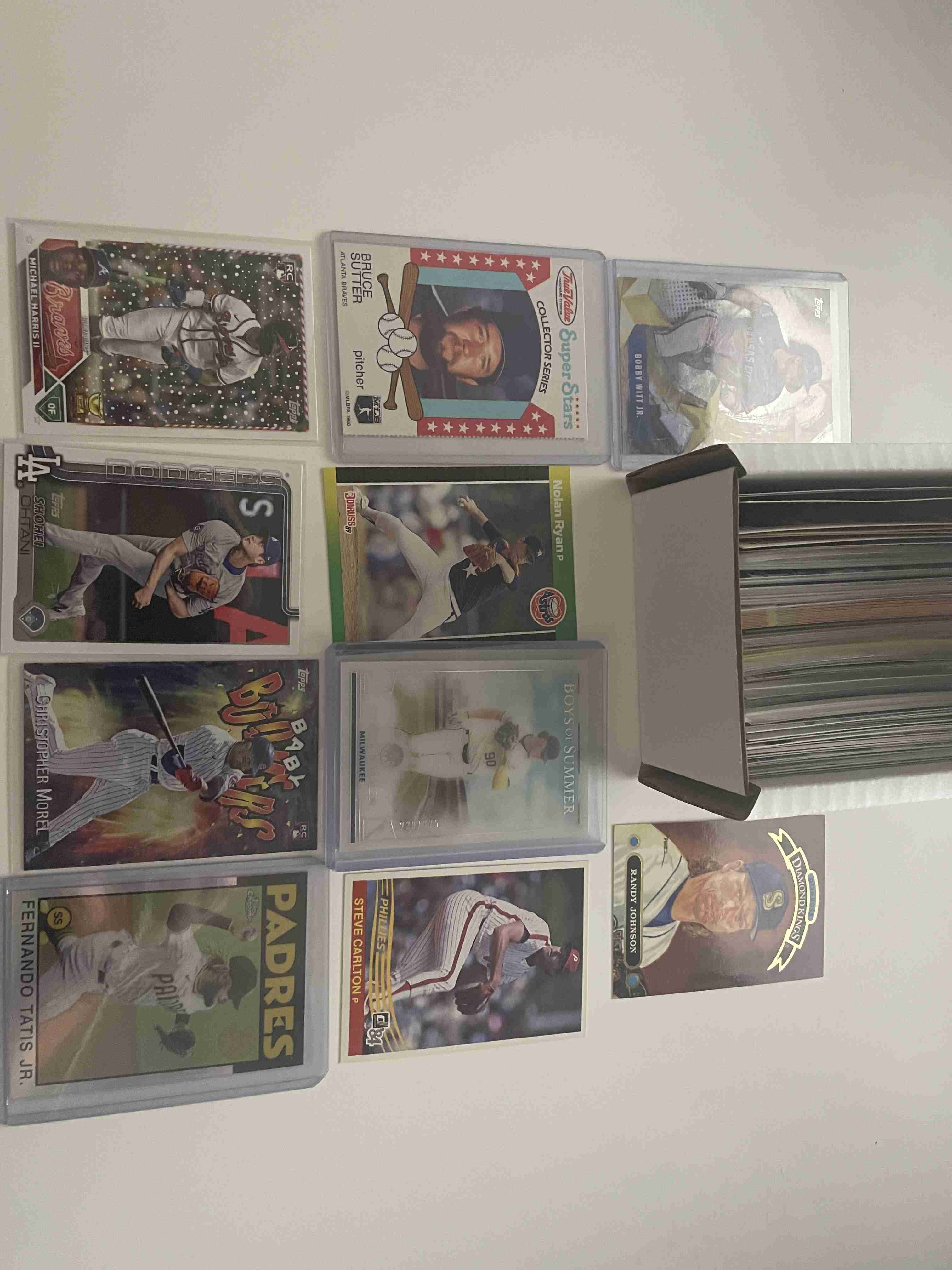 200 count box of baseball cards. Some penny sleeved. Includes cards of Ohtani, Bobby Witt, Tatis, Ryan, Morel, Sutter. Many stars . See my other auctions as well.