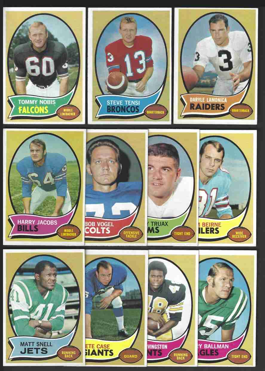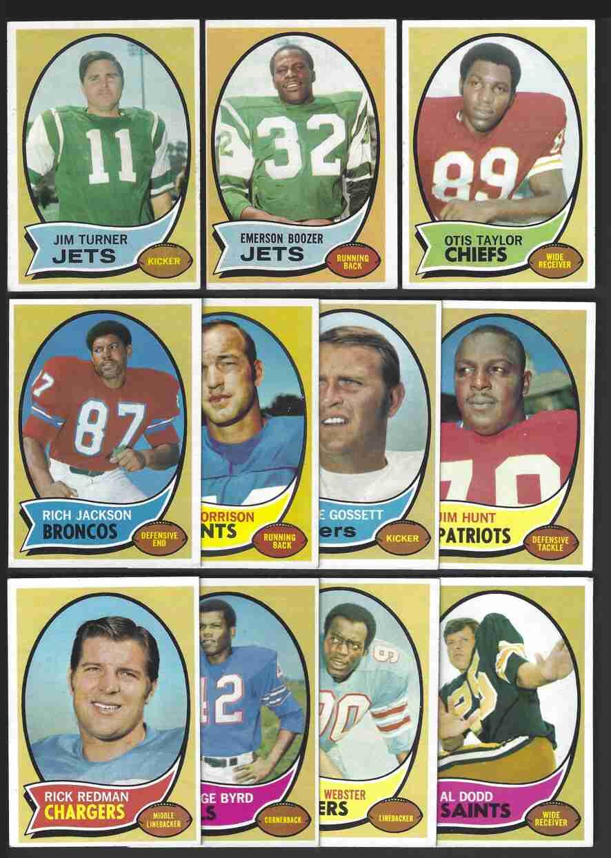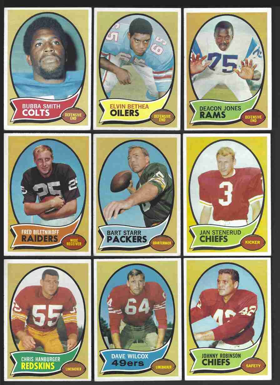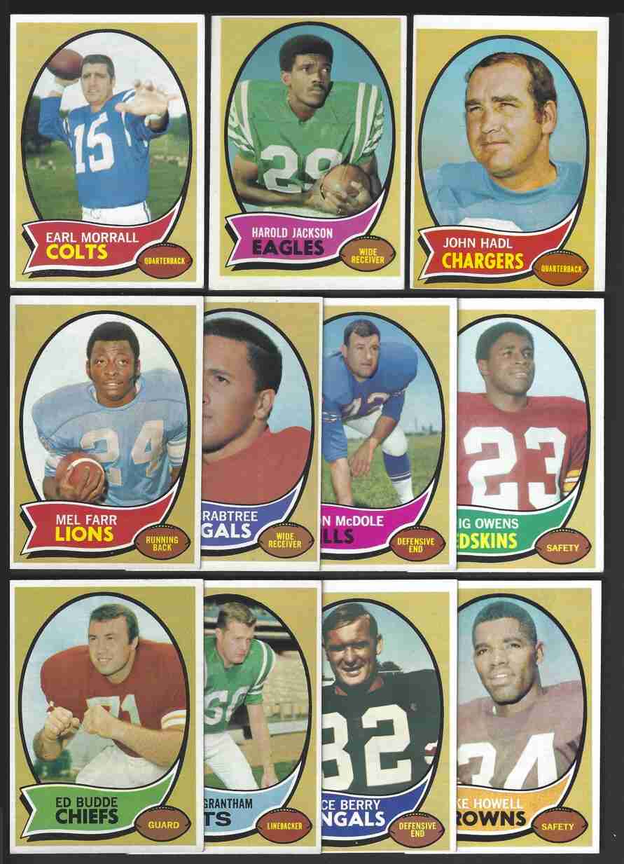 120(RC),123,125(HOF),128(RC),129(HOF). Excellent large lot of 1970 Topps Series I Football cards. This is a high-grade lot. Cards have minor flaws- nice corners. Please review scans carefully for condition.