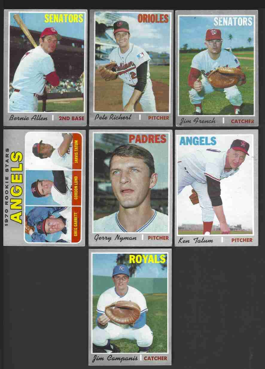 1970 Topps Baseball Lot (15) -Hi No's-. No's-577.601,617,642,644,658,671,682, 684,685,694,705,711,714,717. Large lot of scarce 1970 Topps Baseball Hi-No's. Cards are in the lower-grade range - corner wear, wrinkle, crease. Nice lot to fill some numbers if you don't mind off-condition cards. Please review scans carefully for condition.
