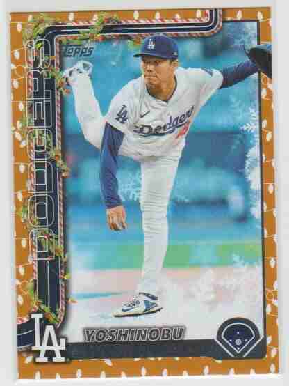 Please refer to the photo for details on the card's condition. The card you are bidding on is the card pictured. This auction is for a 2025 Topps Holiday Gold Lights Parallel #H159 Yoshinobu Yamamoto. If you have any questions or require more detailed images, please don't hesitate to ask. Note: The shipping price shown is for PWE. The card will ship with a tracking number if the final auction price exceeds a certain dollar amount (or combined with the appropriate number of other completed auctions). Otherwise, the card will be shipped PWE. Thank you!
