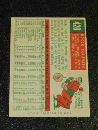 1959 Topps #420 Rocky Colavito- VG+/EX - BV $40