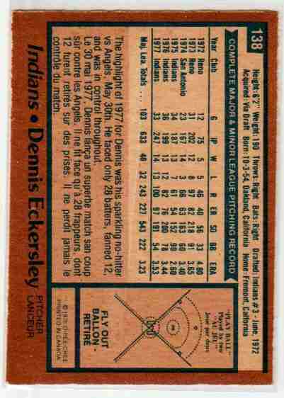 1978 Topps/O-Pee-Chee HOFer Dennis Eckersley