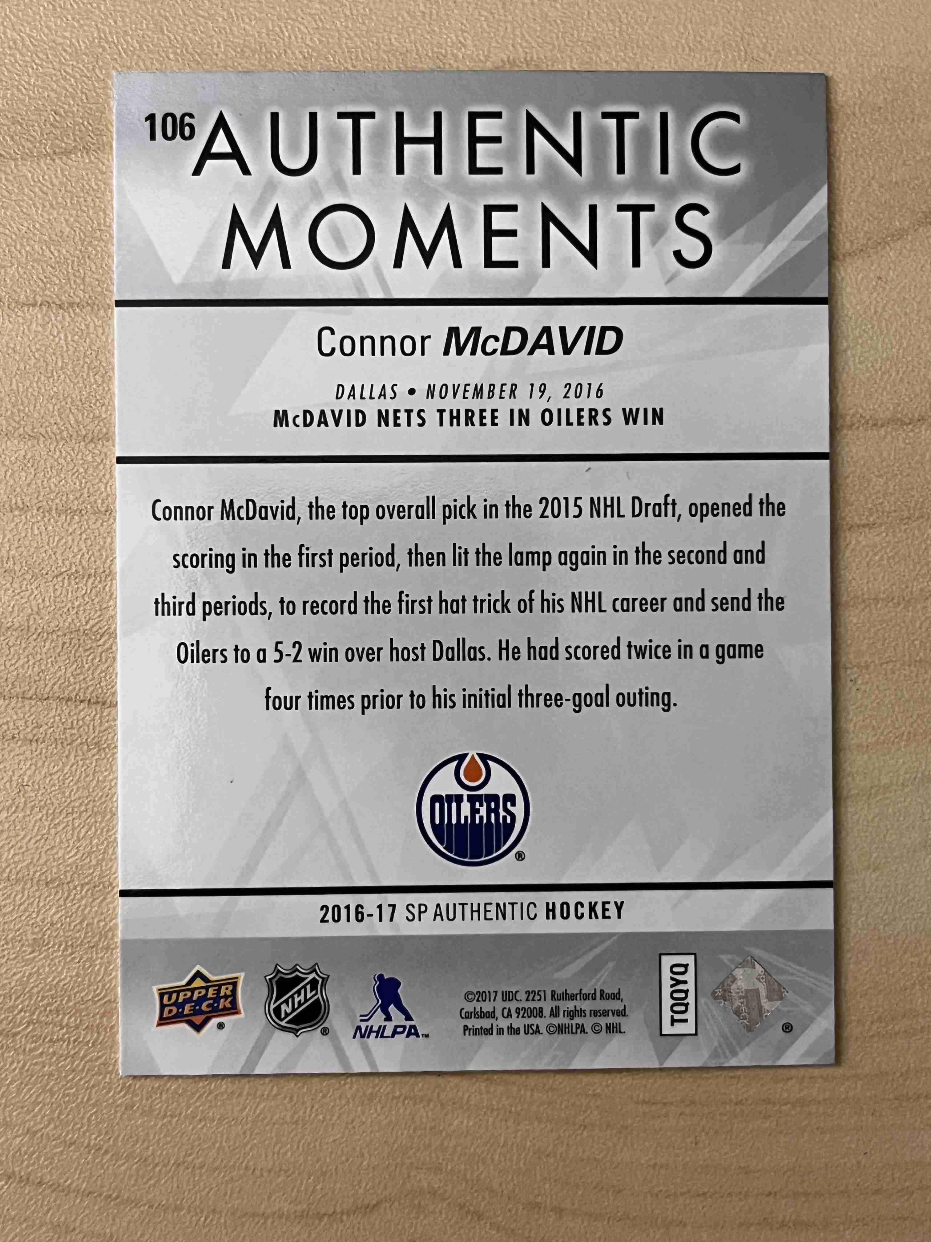 Connor McDavid 2016-17 SP Authentic Moments SP #106