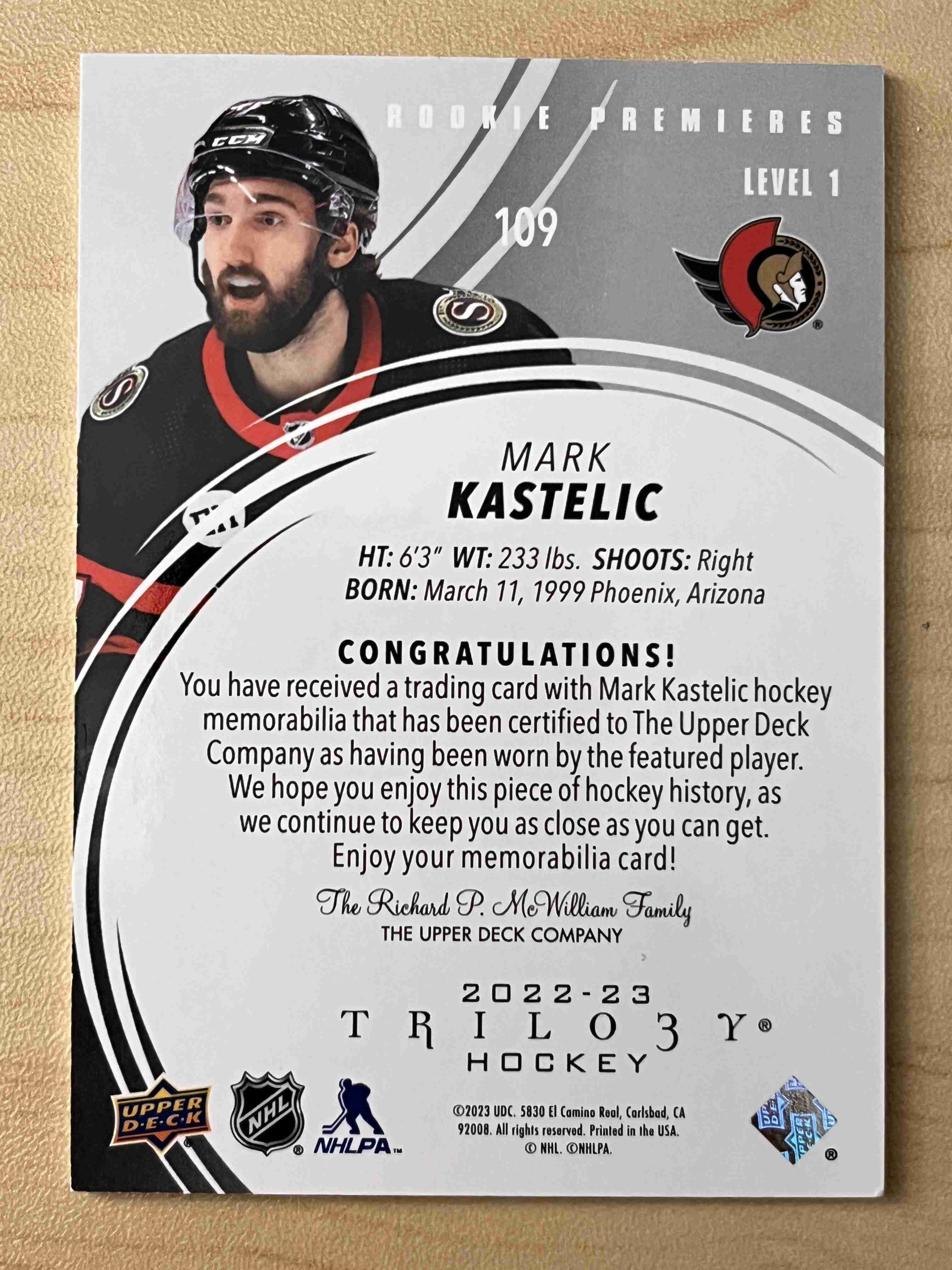 Mark Kastelic 2022-23 Trilogy Rookie Premieres Jersey