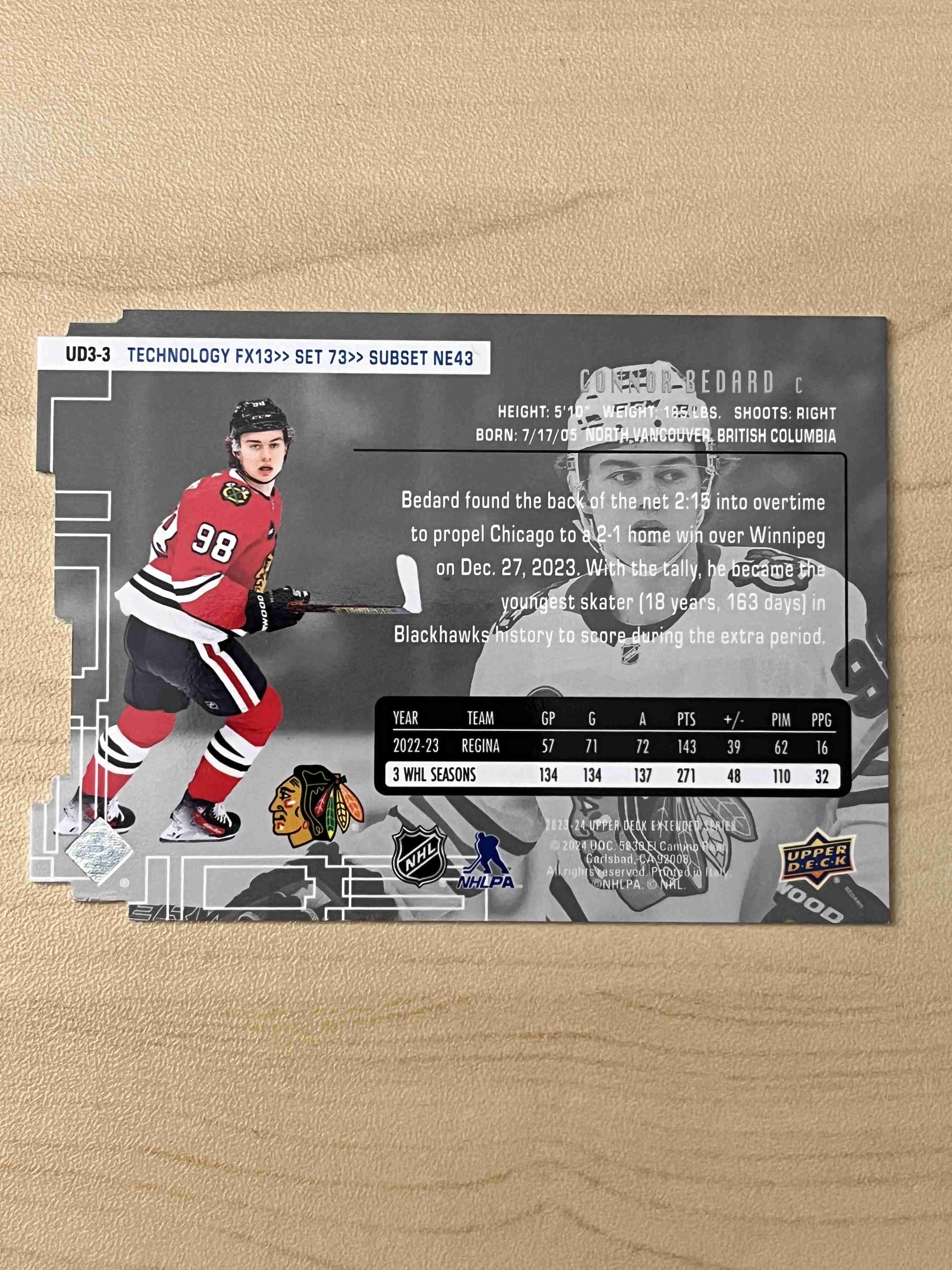 Connor Bedard 2023-24 UD Extended RC 1998-99 UD3 #UD3-3