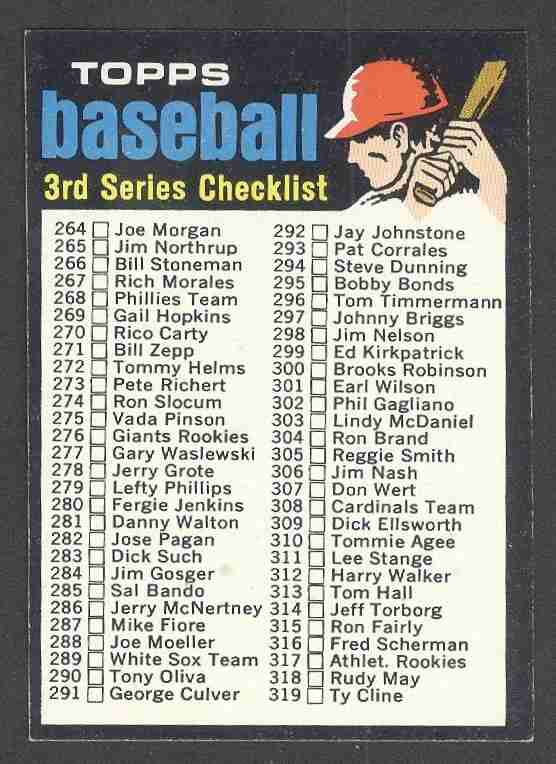 1972 TOPPS CHECKLIST #206 - NM (UNMARKED)