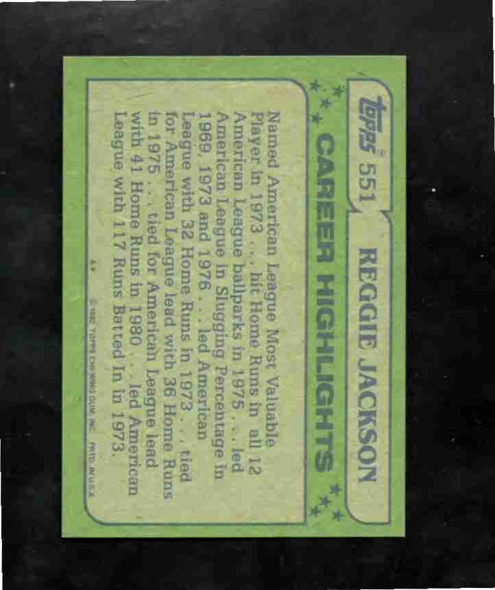 1982 Topps # 551 REGGIE JACKSON Yankees