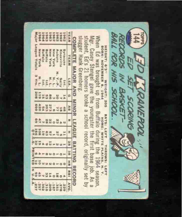 1965 Topps # 144 ED KRANEPOOL NY Mets