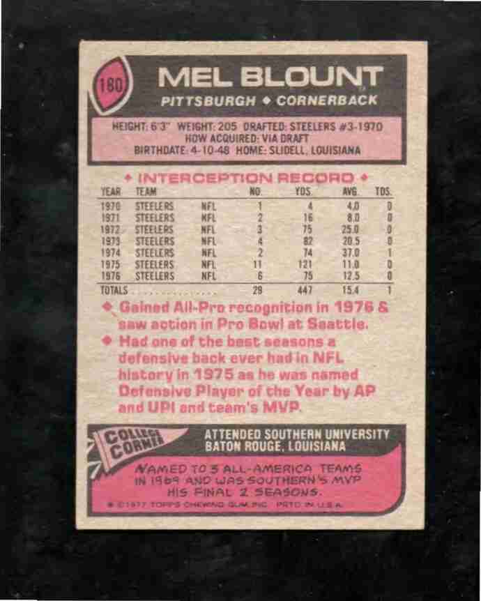 1977 Topps # 180 HOFer MEL BLOUNT Pitt. Steelers