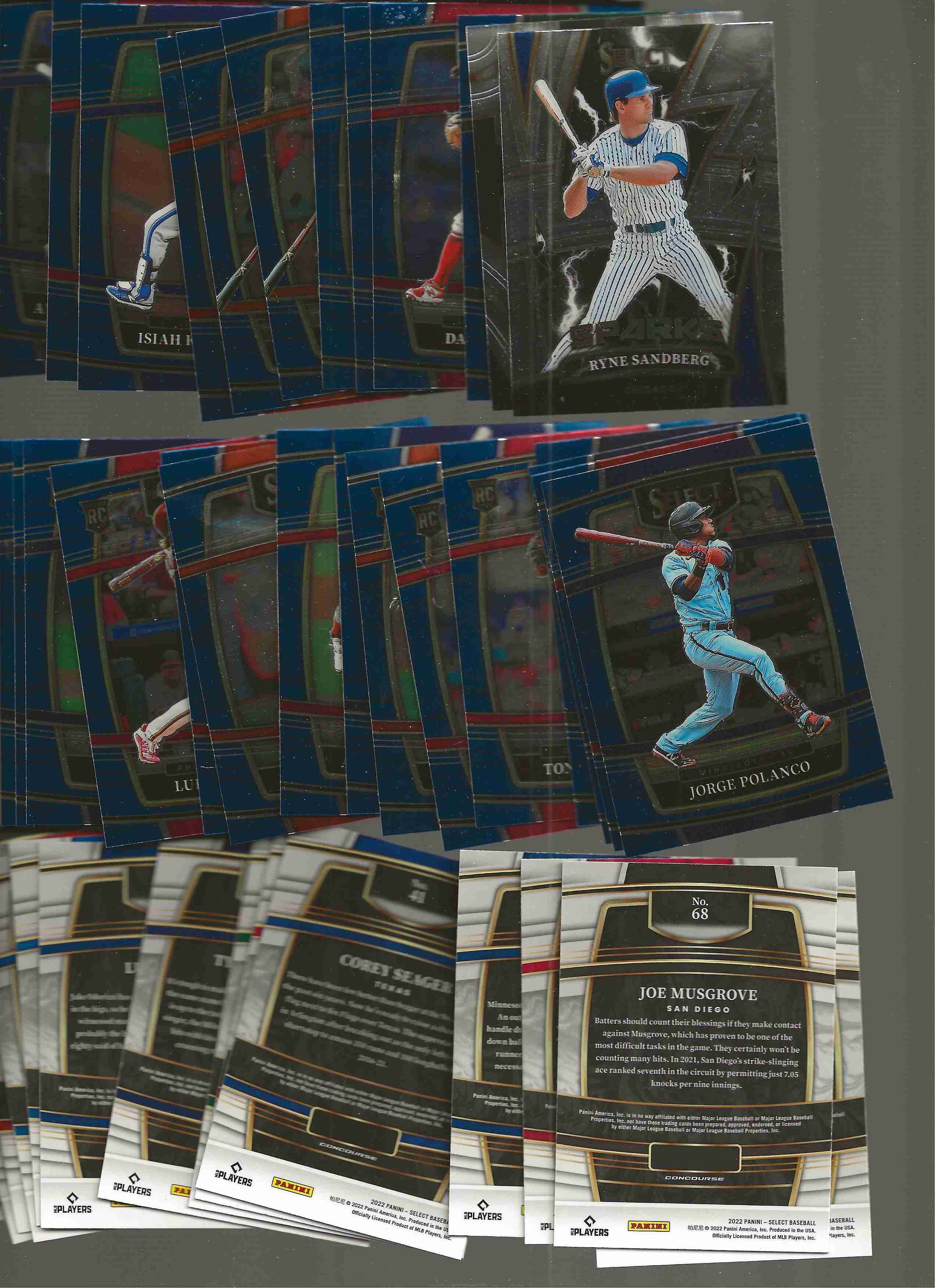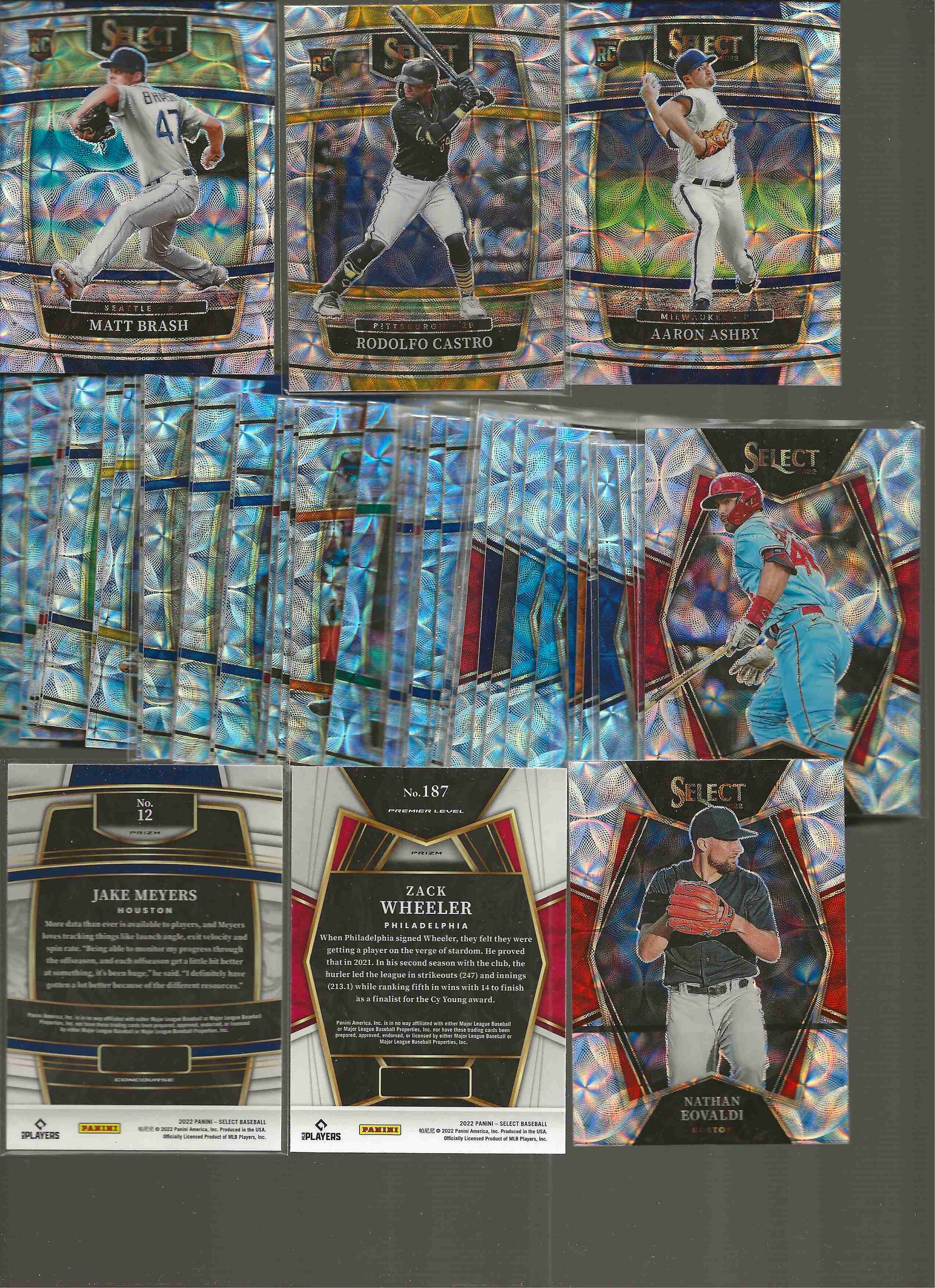 BB 2022 Panini Select 56-card lot includes 13-refractors. BB 2022 Panini Select 48-card lot SCOPE Prizm Holo BV$100. Shipped with USPS tracking