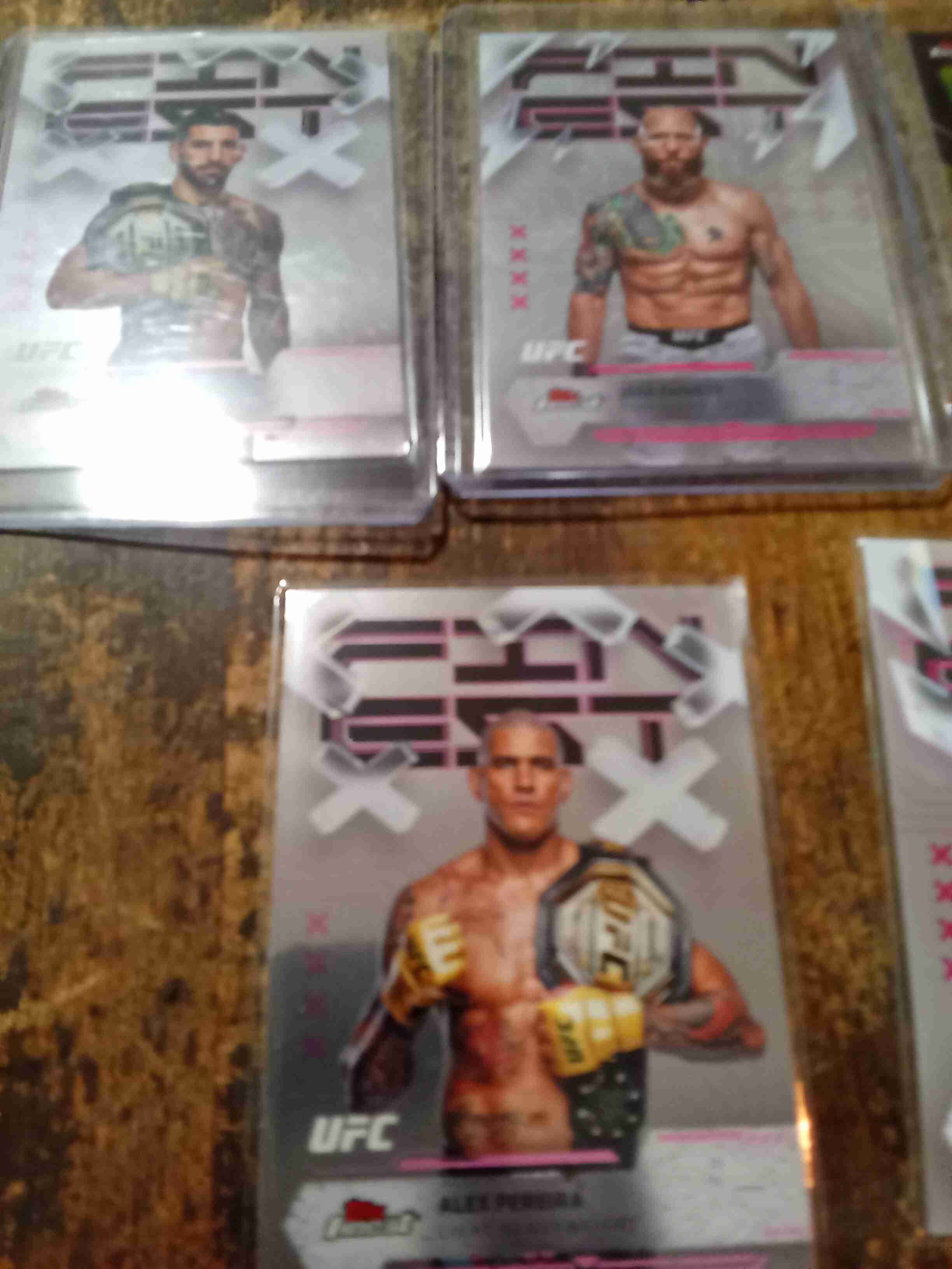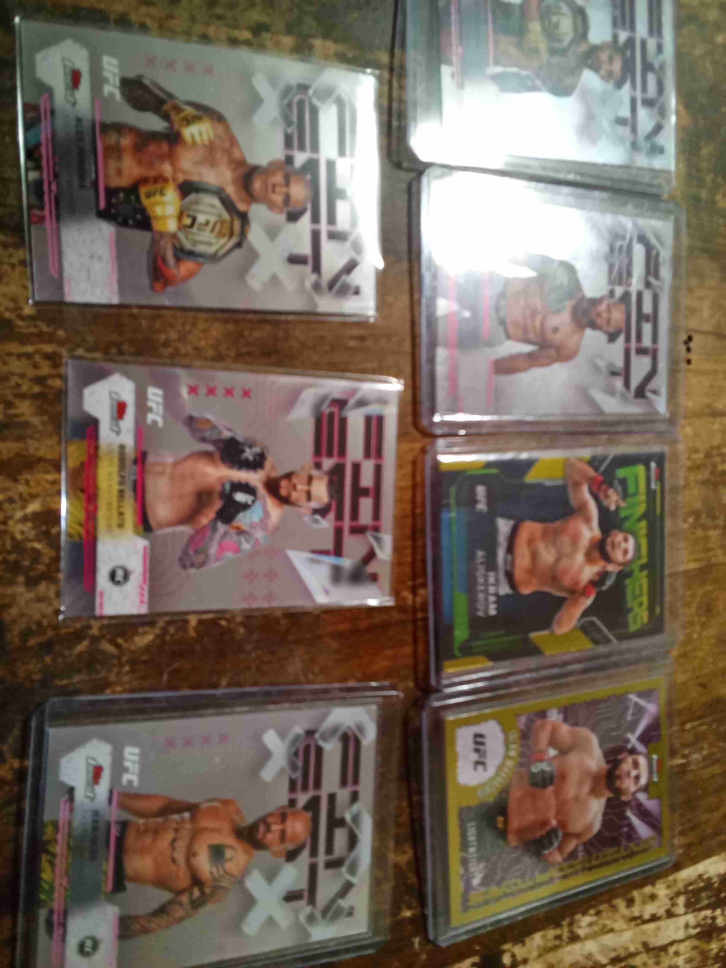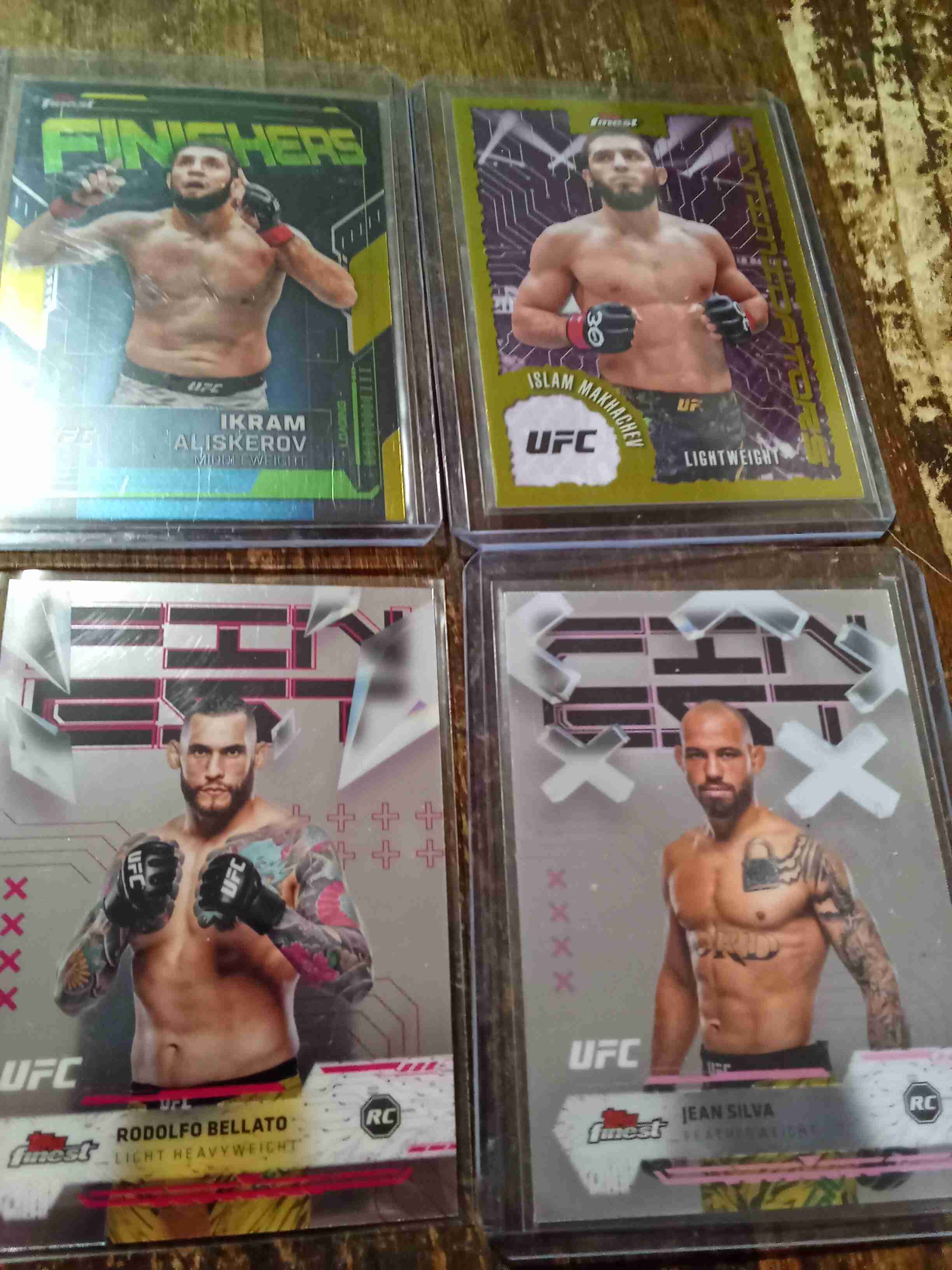 7 card lot of 2025 Topps finest UFC featuring Ilia Topuria,Alex Pereira, Rodolfo bellato, Jean silva (rookie) josh emmett (rare) and insert finishers ikram aliskerov, and intimidators, Islam makhachecv. All cards are nearmint to mint or better, suitable for grading. We do not ship cheap we ship to protect us and the customer. Thanks