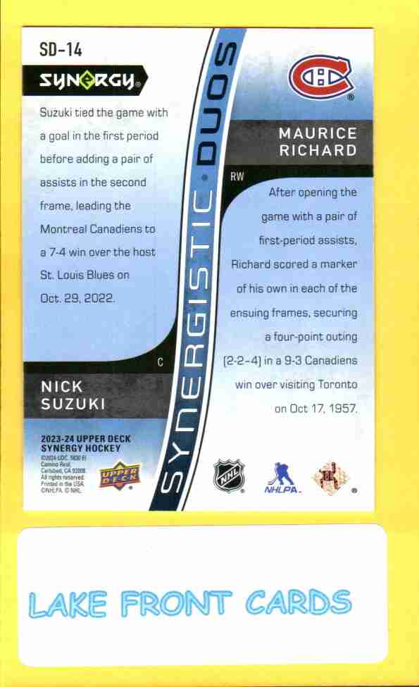 Nick Suzuki / Maurice Richard [Red] #SD-14 570/599 2023 Upper Deck Synergy Synergistic Duos Star-Legend