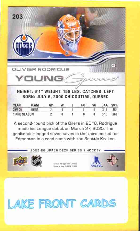 Olivier Rodrigue #203 [RC] Young Guns 2025 Upper Deck