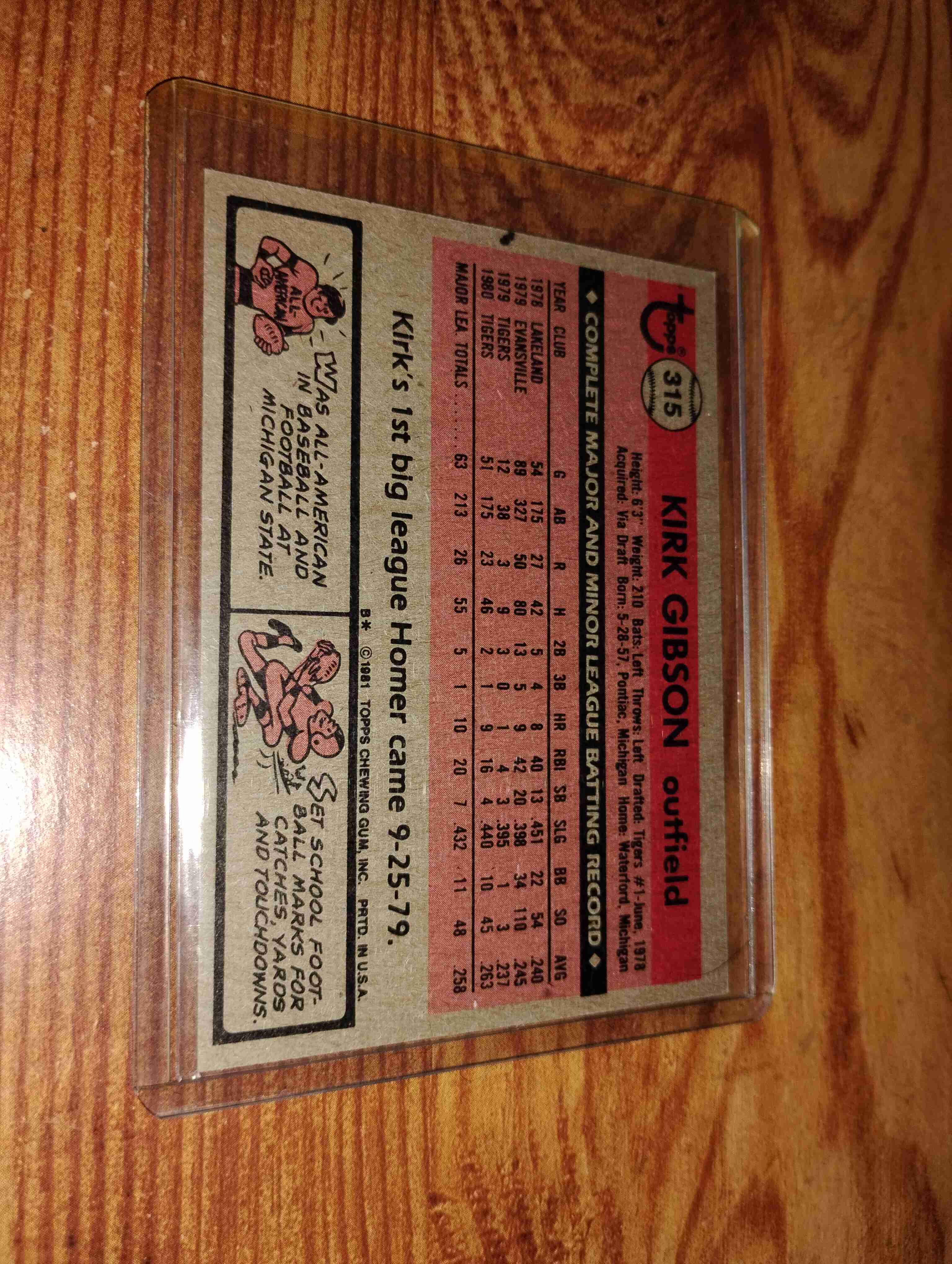 KIRK GIBSON 1981 TOPPS ROOKIE CARD