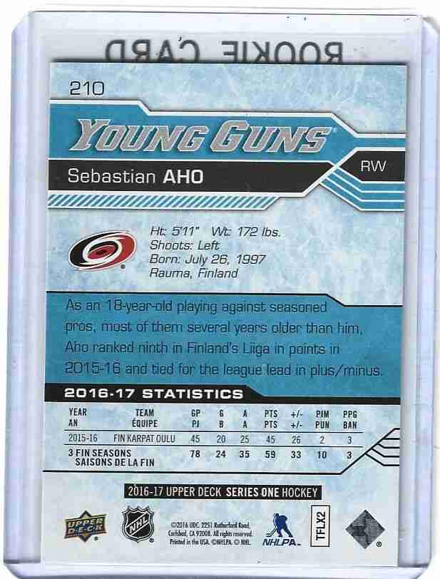 2016/17 UD 1 #210 SEBASTIAN AHO YOUNG GUNS