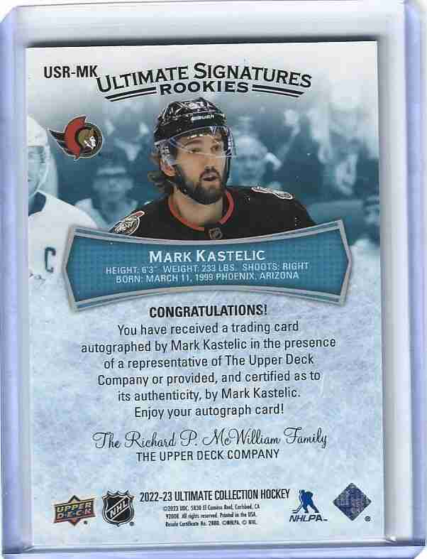 2022/23 MARK KASTELIC ULTIMATE SIGNATURES ROOKIE USR-MK