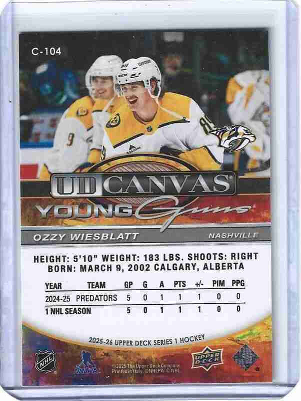 2025/26 UD 1 C104 OZZY WIESBLATT YOUNG GUNS CANVAS