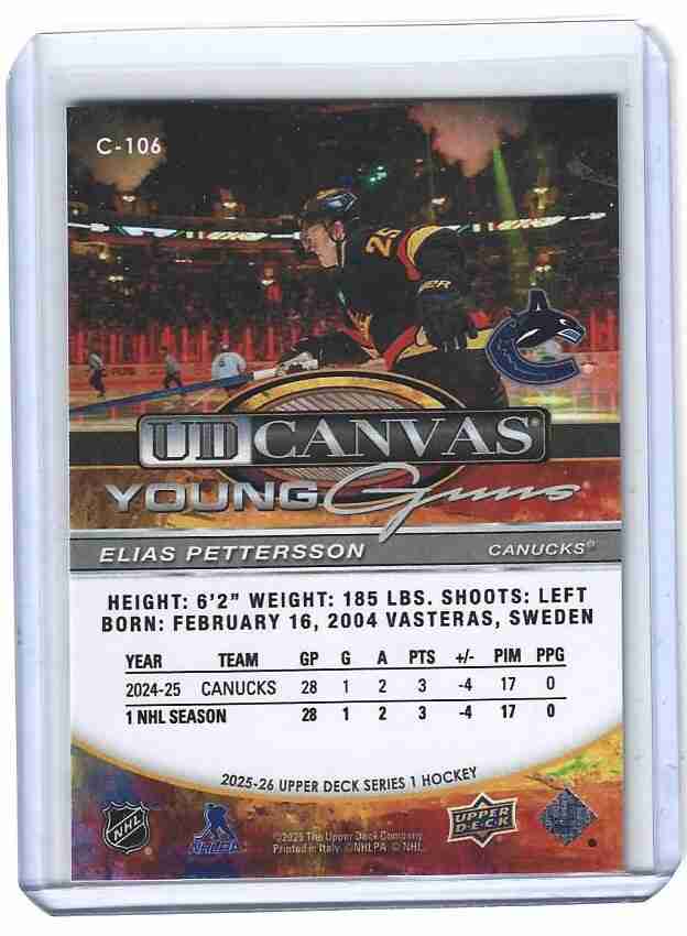 2025/26 UD 1 C106 ELIAS PETTERSSON YOUNG GUNS CANVAS