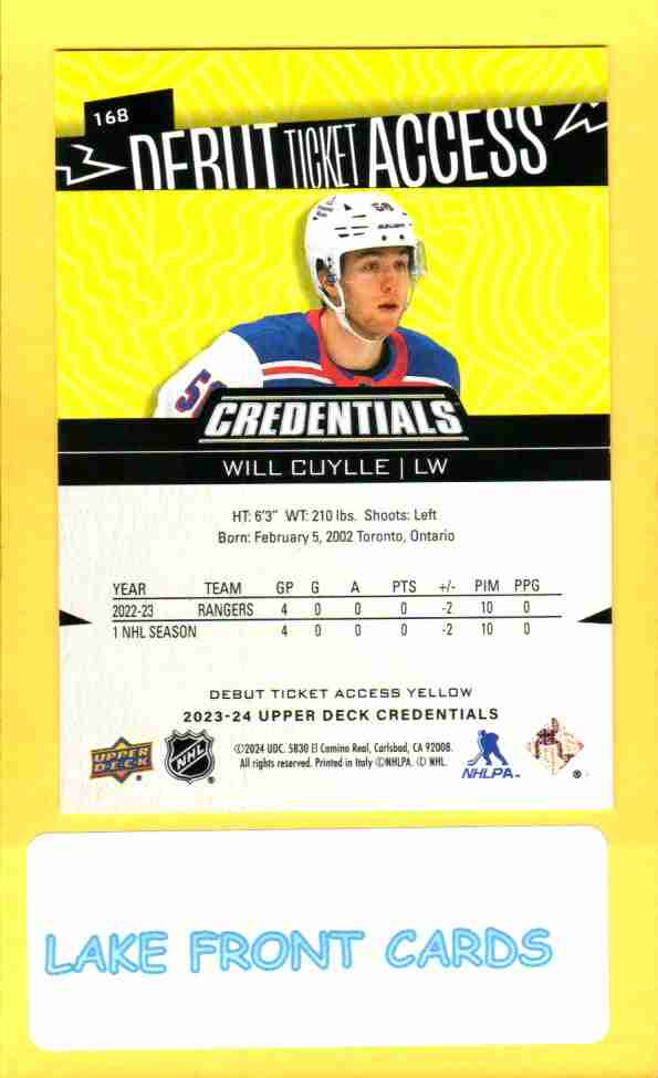 Will Cuylle #168 2023-24 UD Credentials Debut Ticket Access