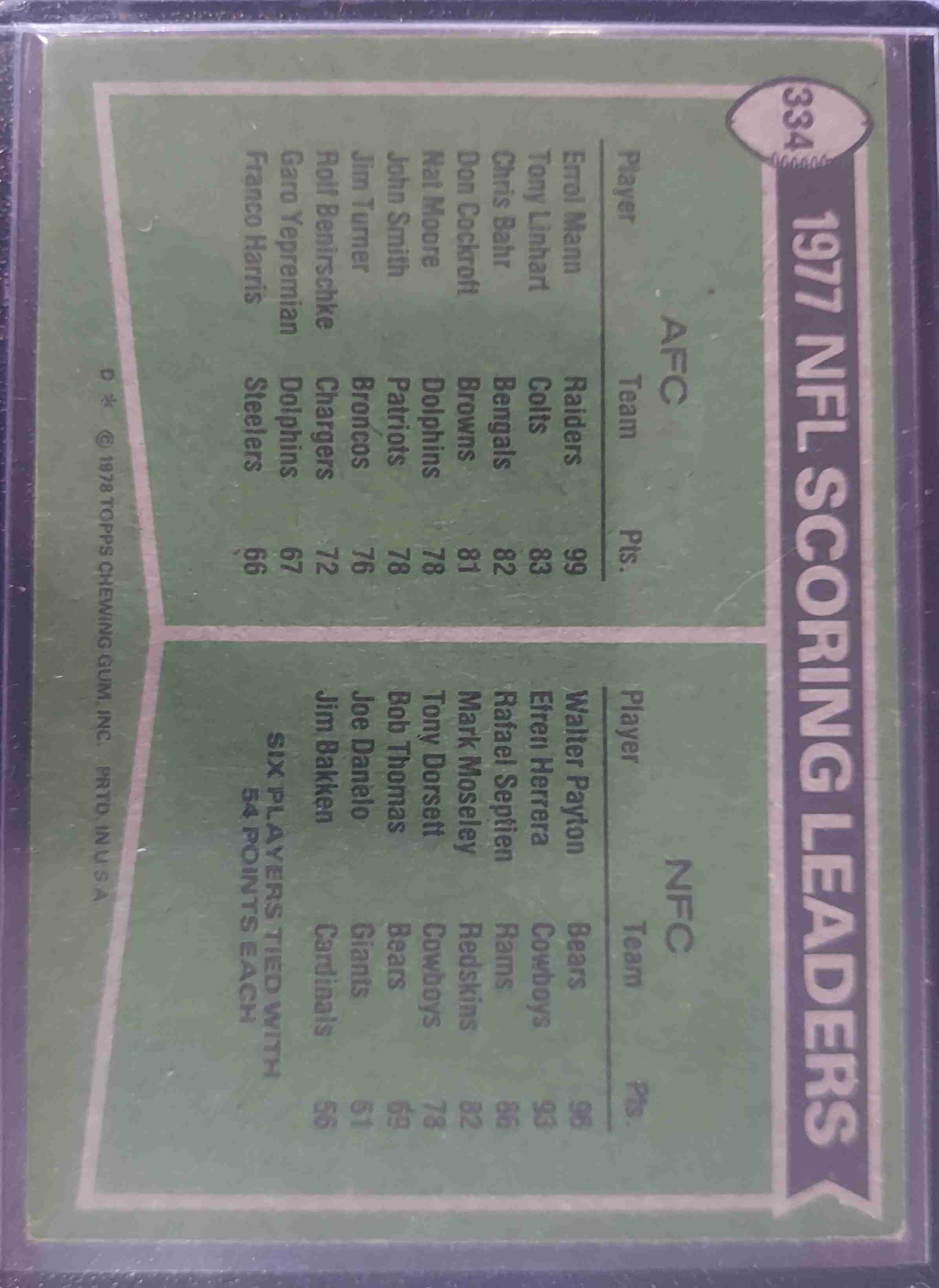 1978 Topps # 334 NFL Scoring Leaders Mann/Walter Payton