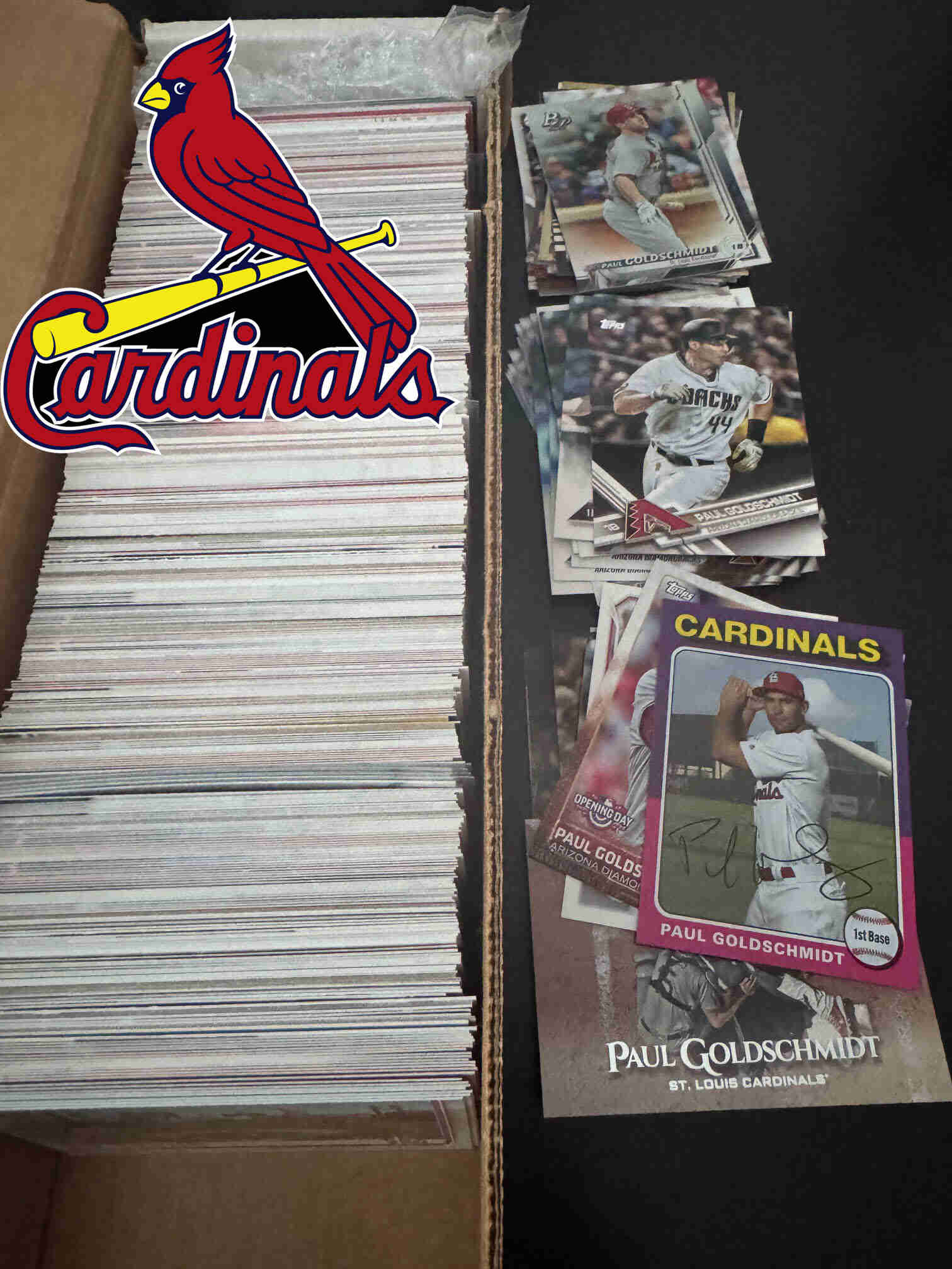 This is a large lot of 500+ baseball cards featuring players associated with the Cardinals franchise. Great lot for team collectors or card dealers/resellers. Most cards will be players who are depicted in the named team's uniforms/logo on the card, but some cards are players who were associated with the team at some recent point in time but are shown as associated with other teams.