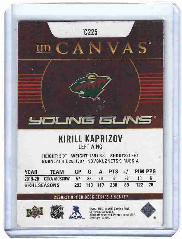 2020/21 UD 2 C225 KIRILL KAPRIZOV YOUNG GUNS CANVAS