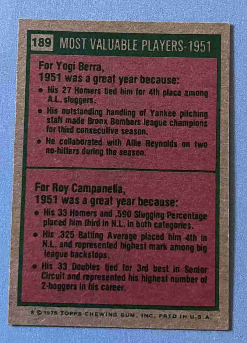 75 ToppsMini 1951 MVPS #189 HOFx2!