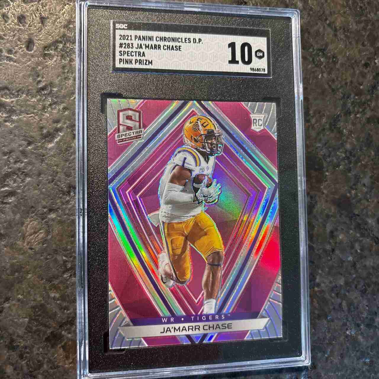 2021 Chronicles DP Ja’Marr Chase Spectra Pink Prizm. SGC 10