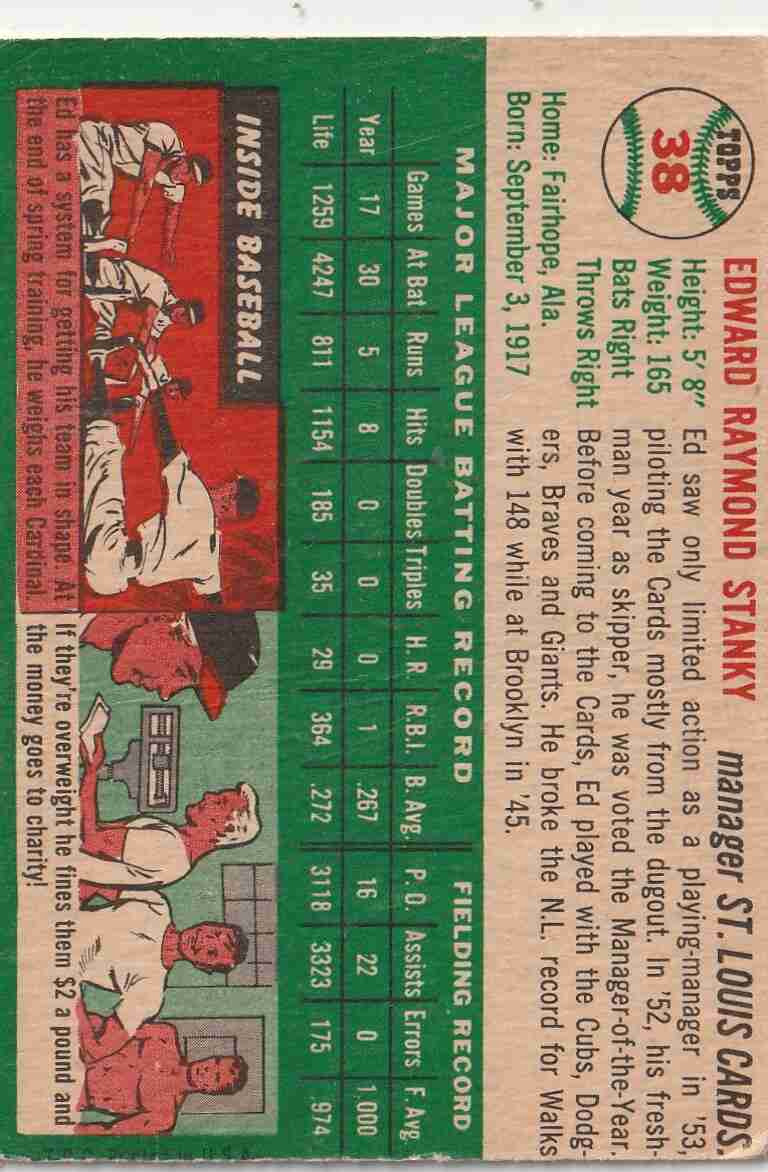 1954 Topps #38 Eddie Stanky St. Louis Cardinals