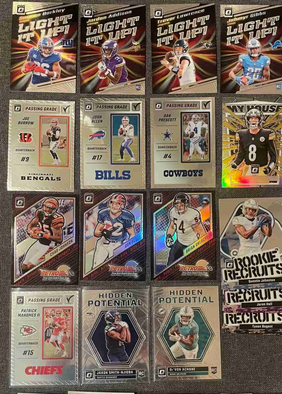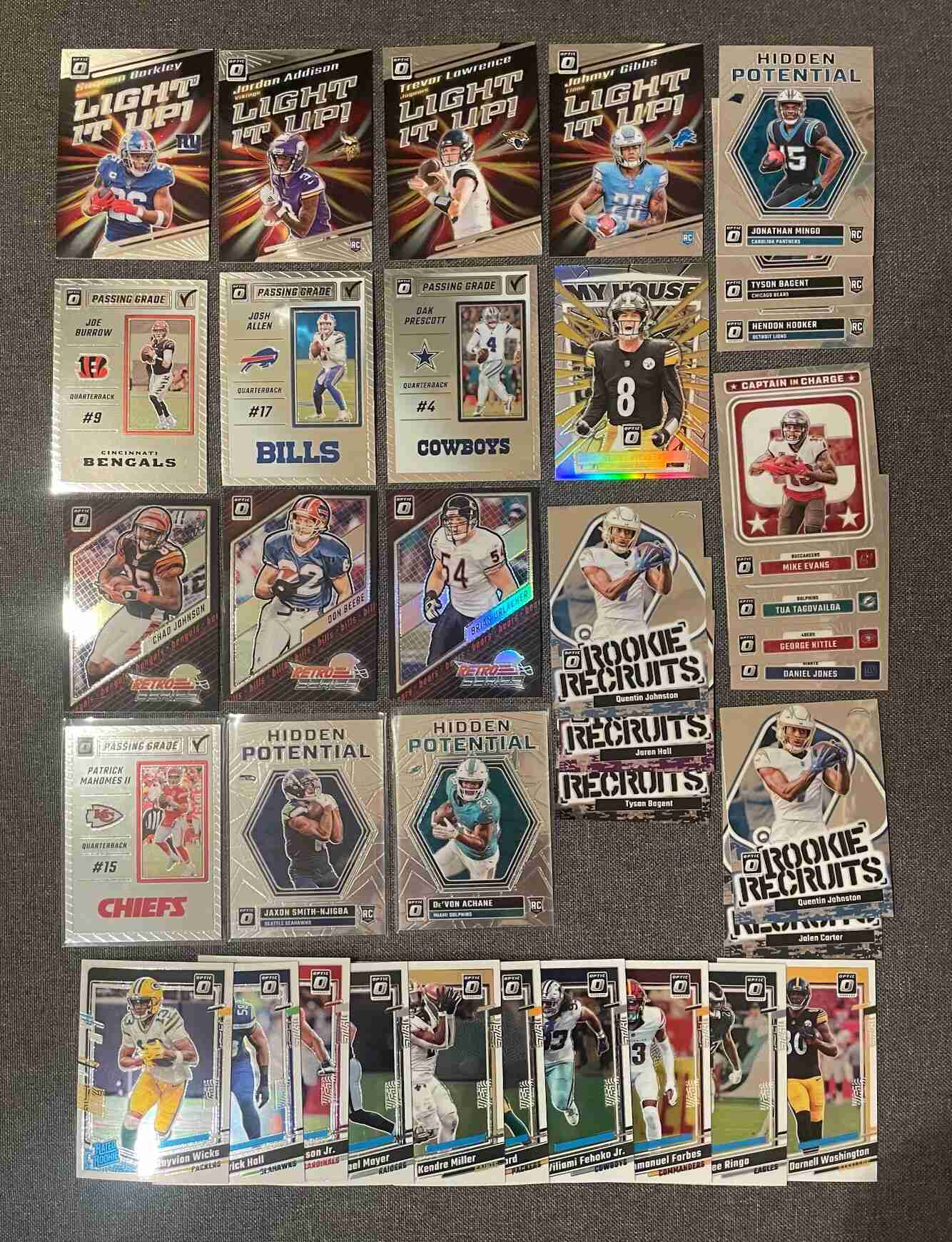 2023 Optic Football Lot (36) Achane JSN RCs Mahomes no base