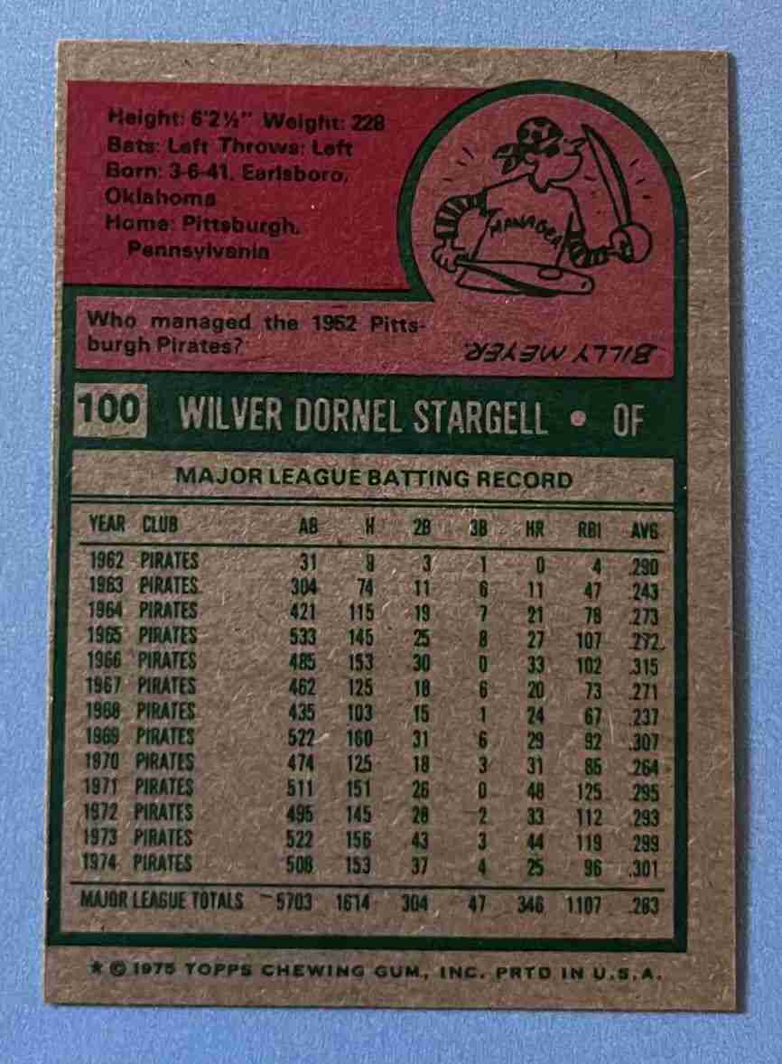 75 ToppsMini WILLIE STARGELL #100 HOF!