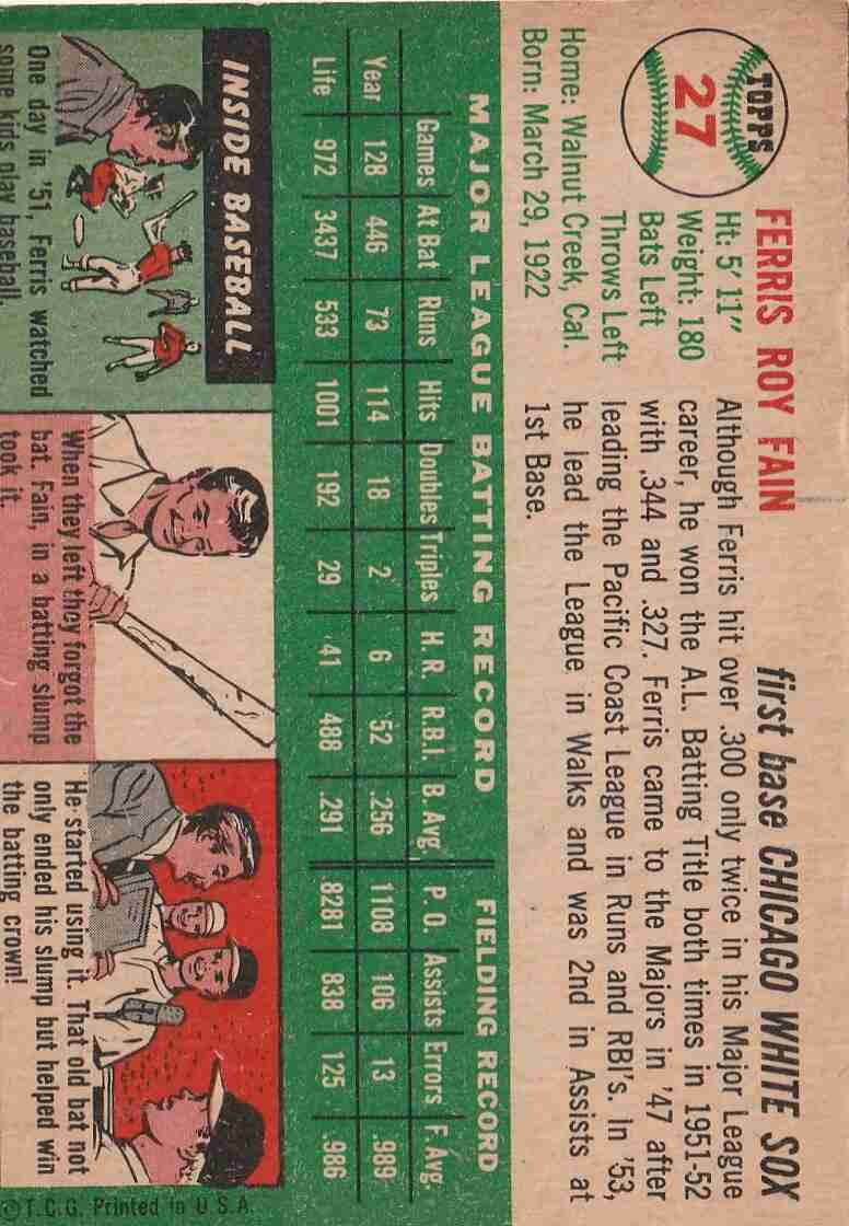 1954 Topps #27 Ferris Fain White Sox