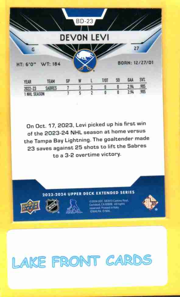 Devon Levi #BD-23 2023 Upper Deck Black Diamond Retro