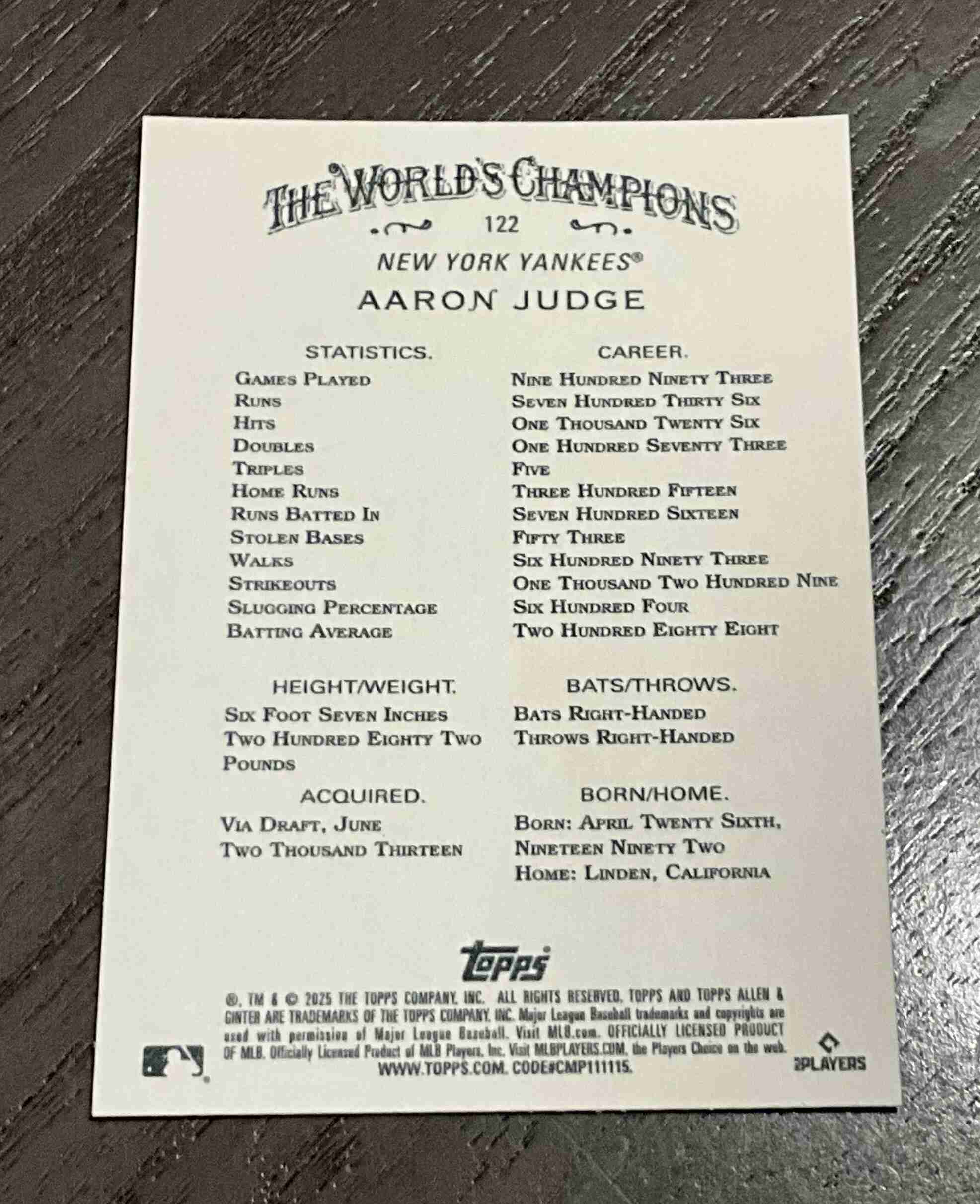 Aaron Judge 2025 Allen & Ginter # 122 NY Yankees