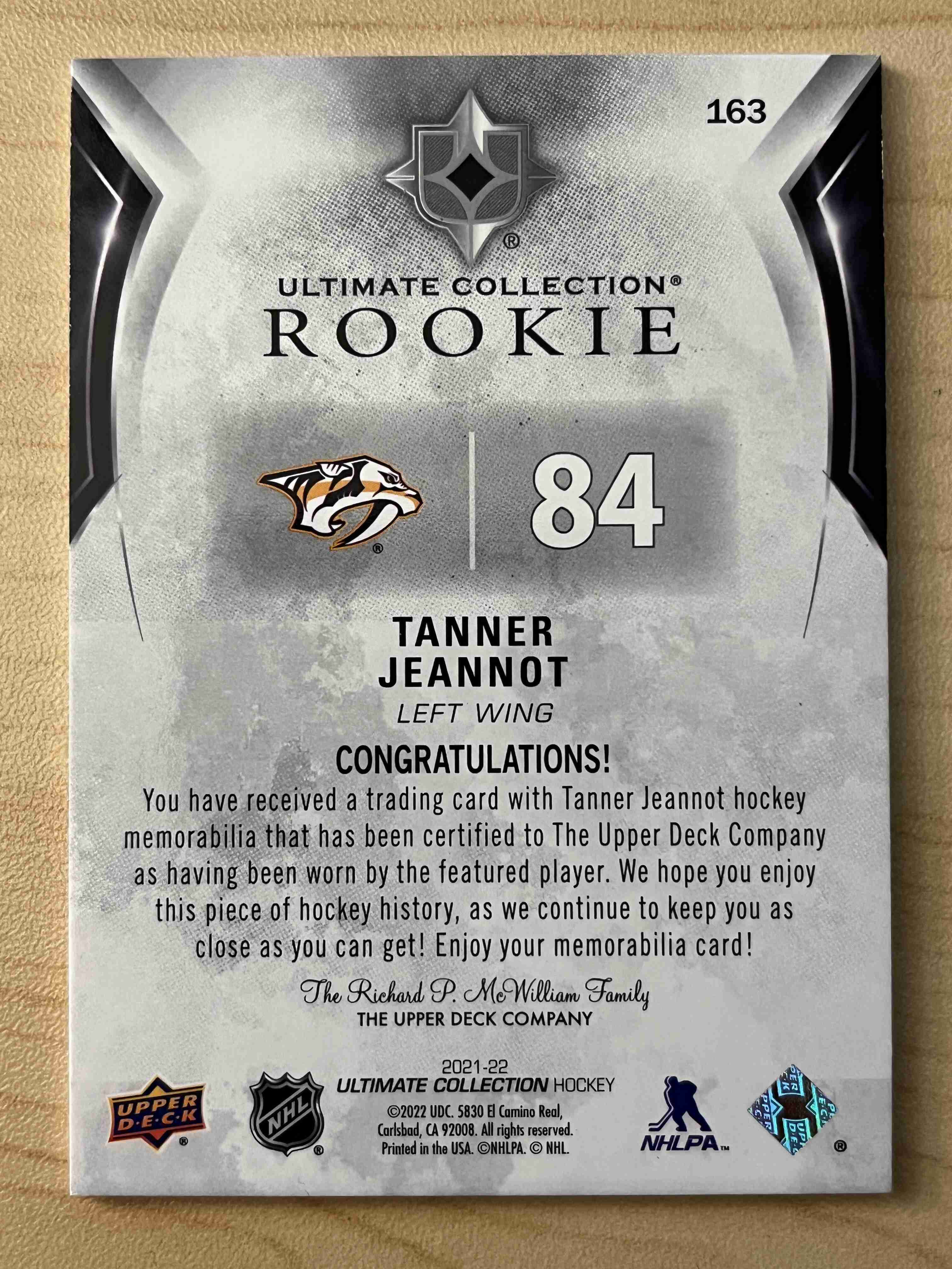 Tanner Jeannot 2021-22 UD Ultimate Collection Rookies Jerse
