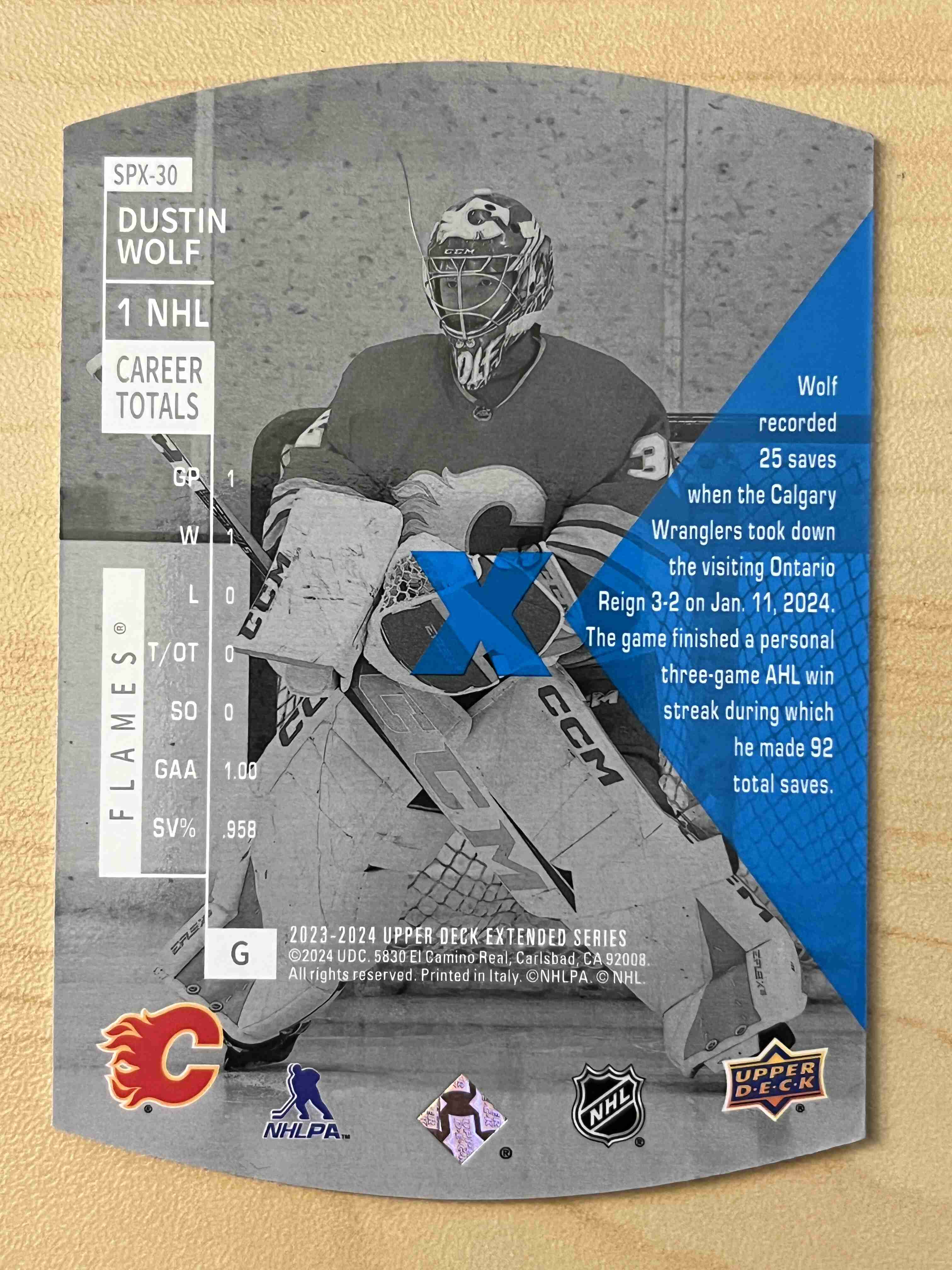 Dustin Wolf 2023-24 UD Extended 1997-98 SPx Holoview Retro
