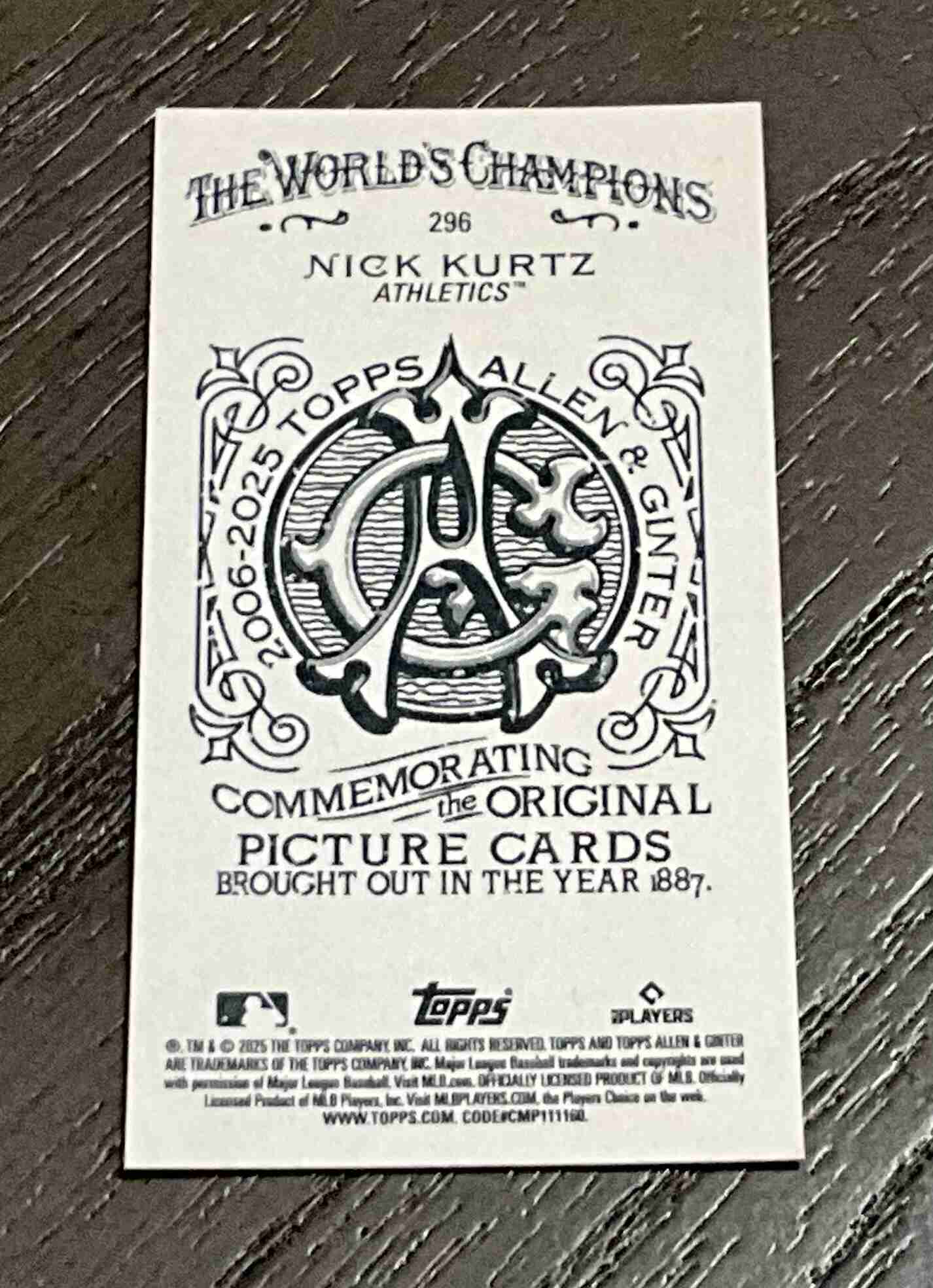 Nick Kurtz Rookie Mini A&G Back 2025 Allen & Ginter # 296