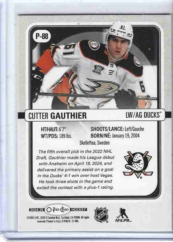 2024/25 OPC PREMIER CUTTER GAUTHIER ROOKIE P-88