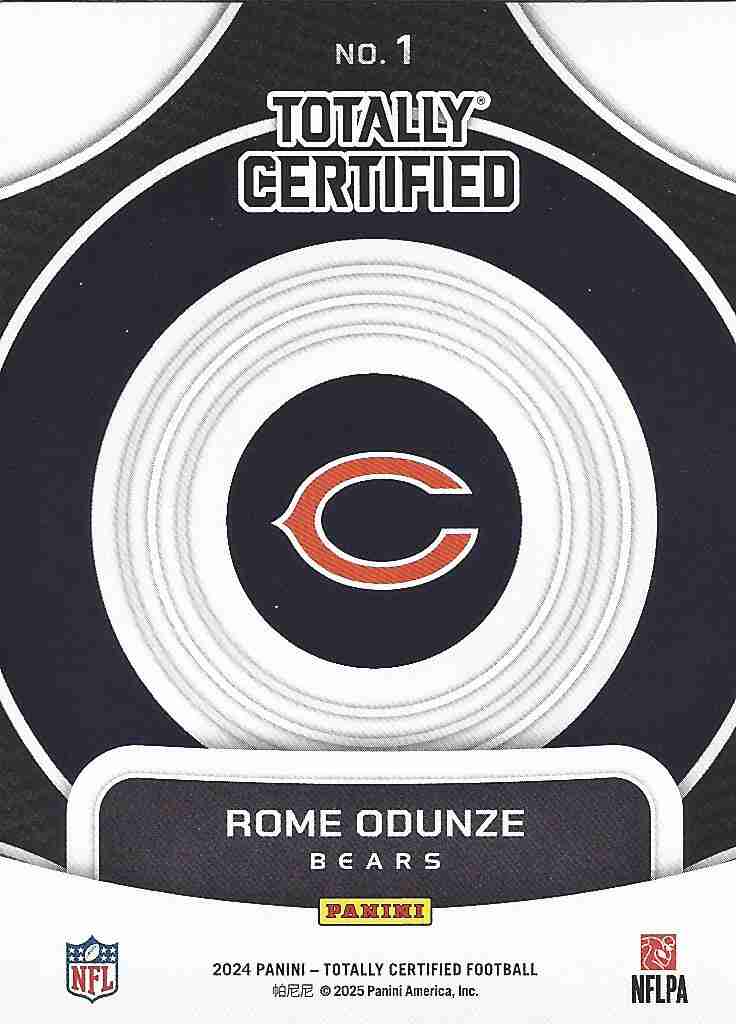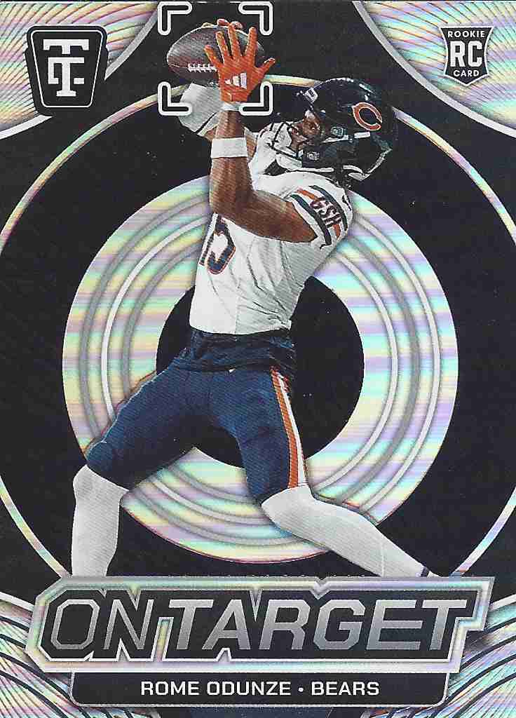 2024 Panini Totally Certified On Target Insert Rookie Card (#1) of the Chicago Bears standout wide receiver Rome Odunze. The card is in NM condition.