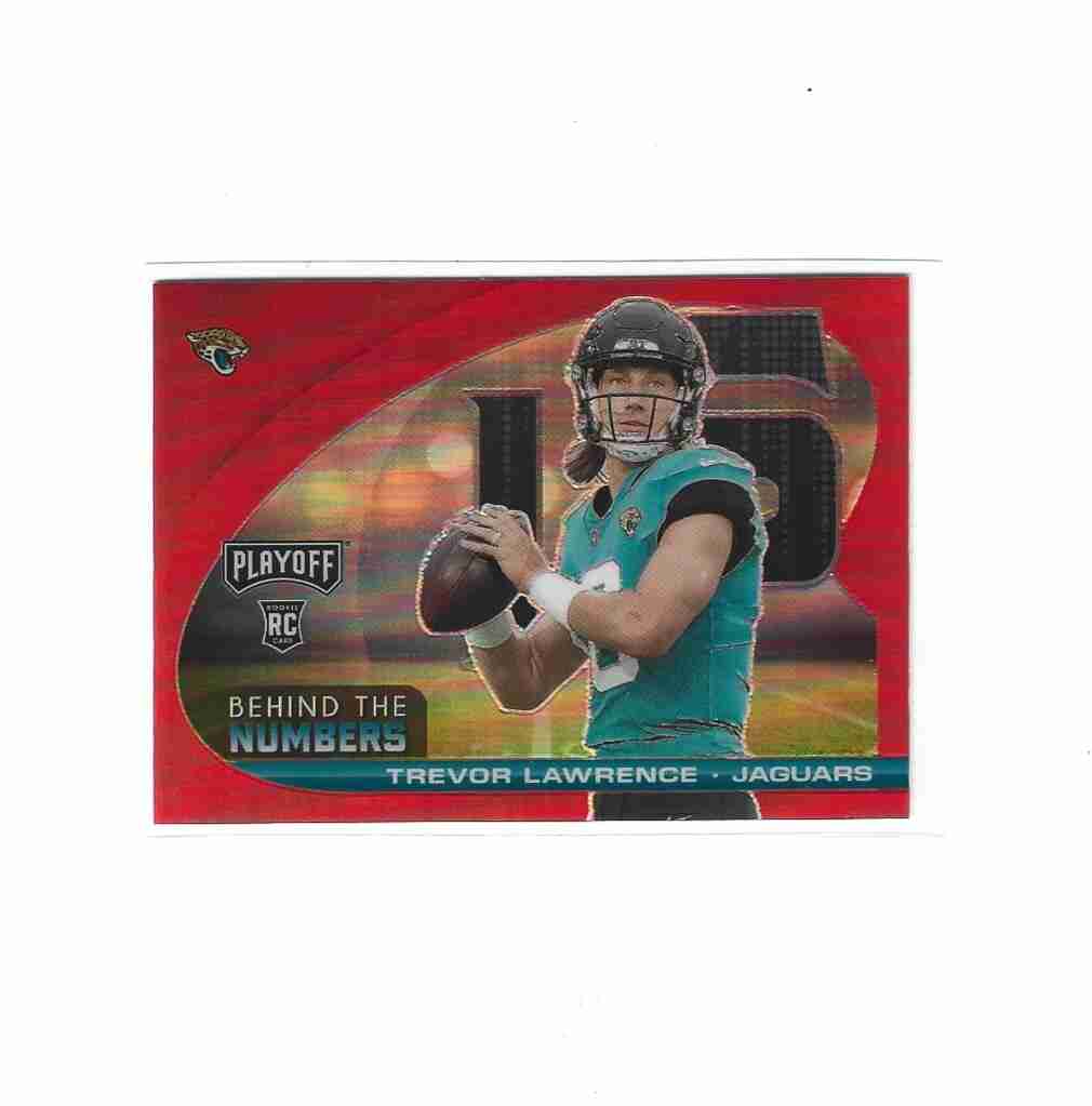 2021 Playoff Behind the Numbers Trevor Lawrence RC Red Priz