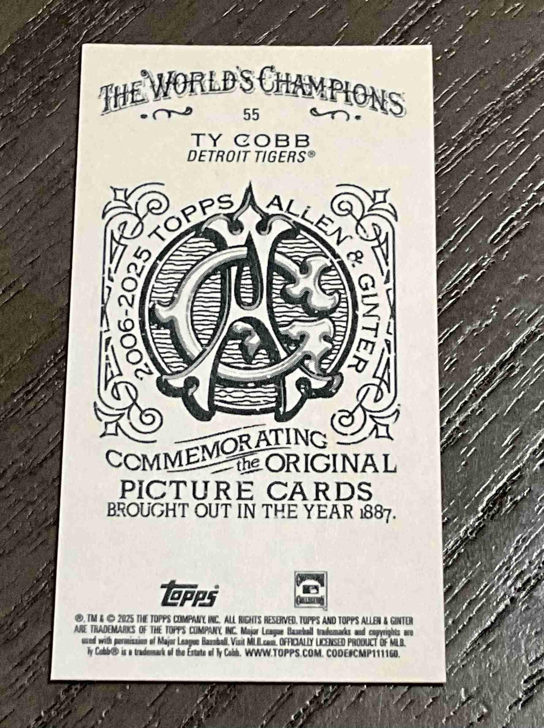 TY Cobb Mini A&G Back 2025 Allen & Ginter # 55 Tigers
