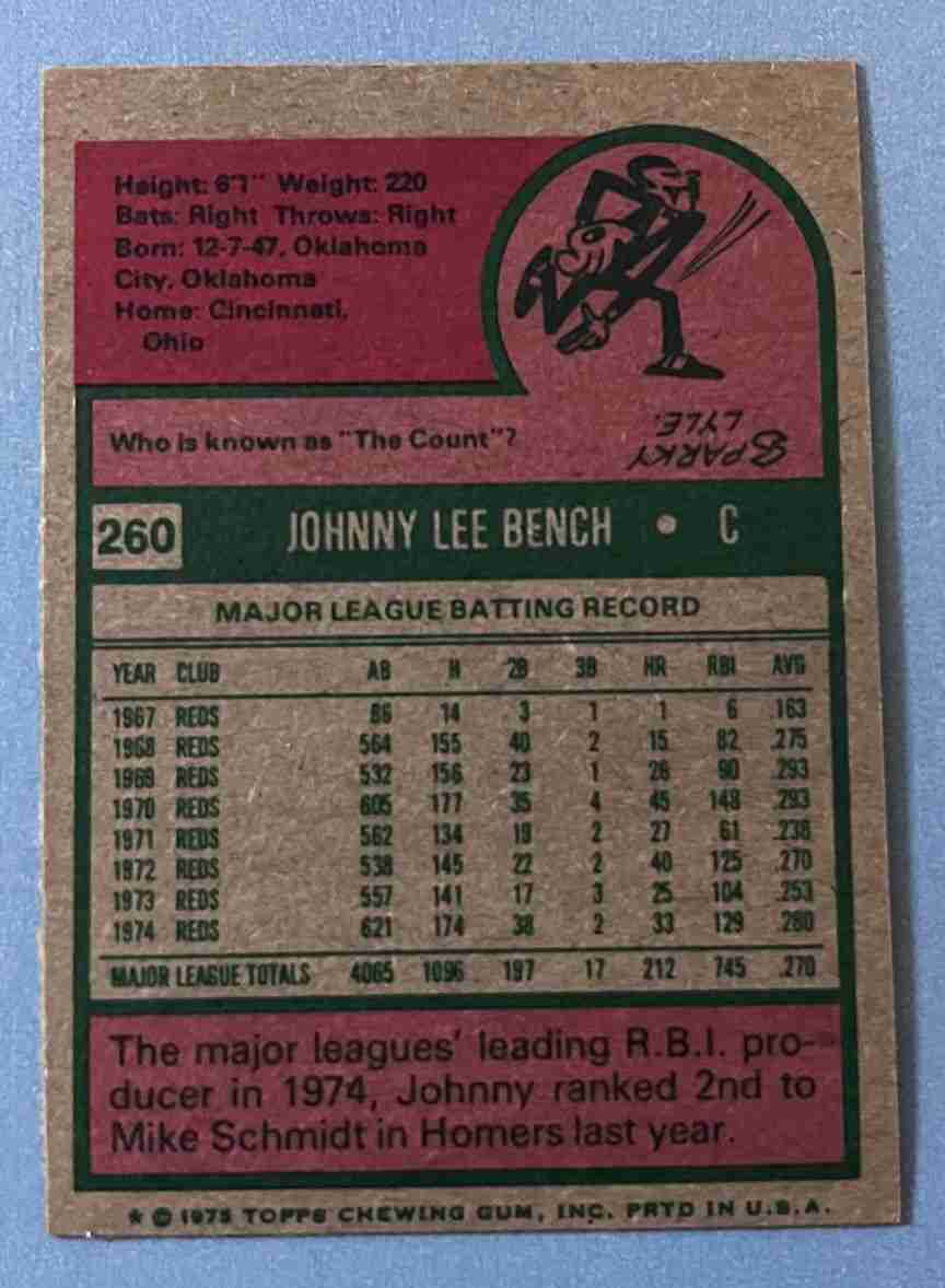 75 ToppsMini JOHNNY BENCH #260 HOF!